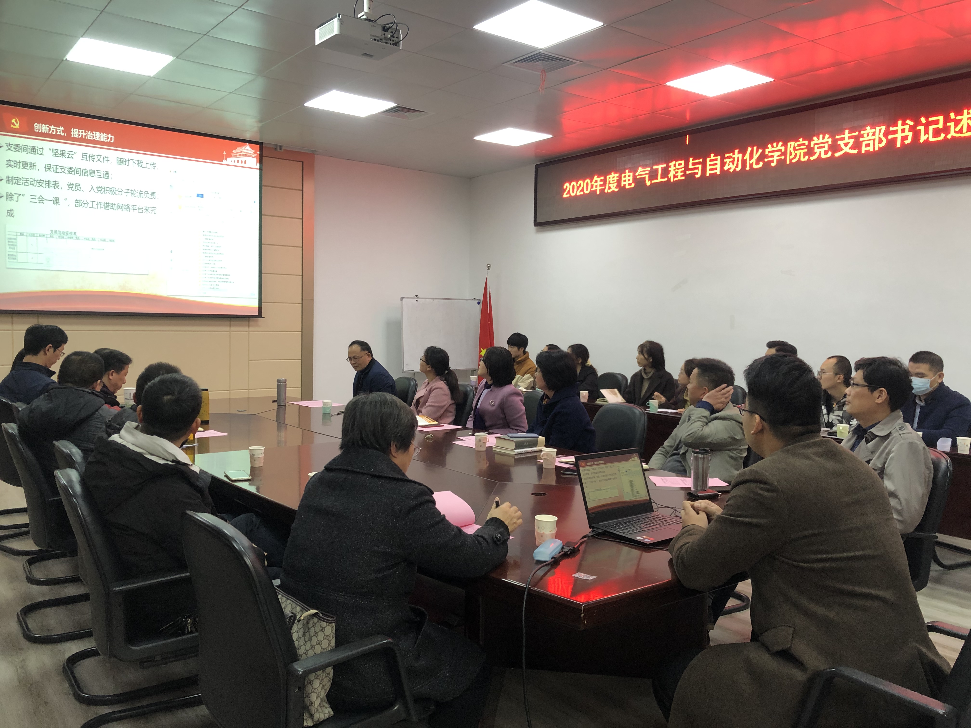会上,支部书记们以PPT汇报的形式,介绍了党支部概况,对一年来支部工作进行了总结,展示了支部所取得的成果,反思支部工作中所存在的问题并提出了相应的改进措施。针对理论学习形式单一、效率不高、支部党员评价考核体系待完善、支部人才挖掘运用工作有所欠缺等问题,电气工程第一研究生党支部书记胡雍飞同志提出了“化被动为主动、化定性为定量、化独虑为群策”的解决思路。占永琼书记代表学院党委进行了点评,希望大家在做好工作的同时要加强对理论知识的学习,特别是对习近平总书记重要讲话、十九大及十九届二中、三中、四中、五中全会精神的学习。校党委组织部副部长程贞玫同志也从“立足于严、立足于实、立足于新”三个方面对学院党支部工作提出建议。