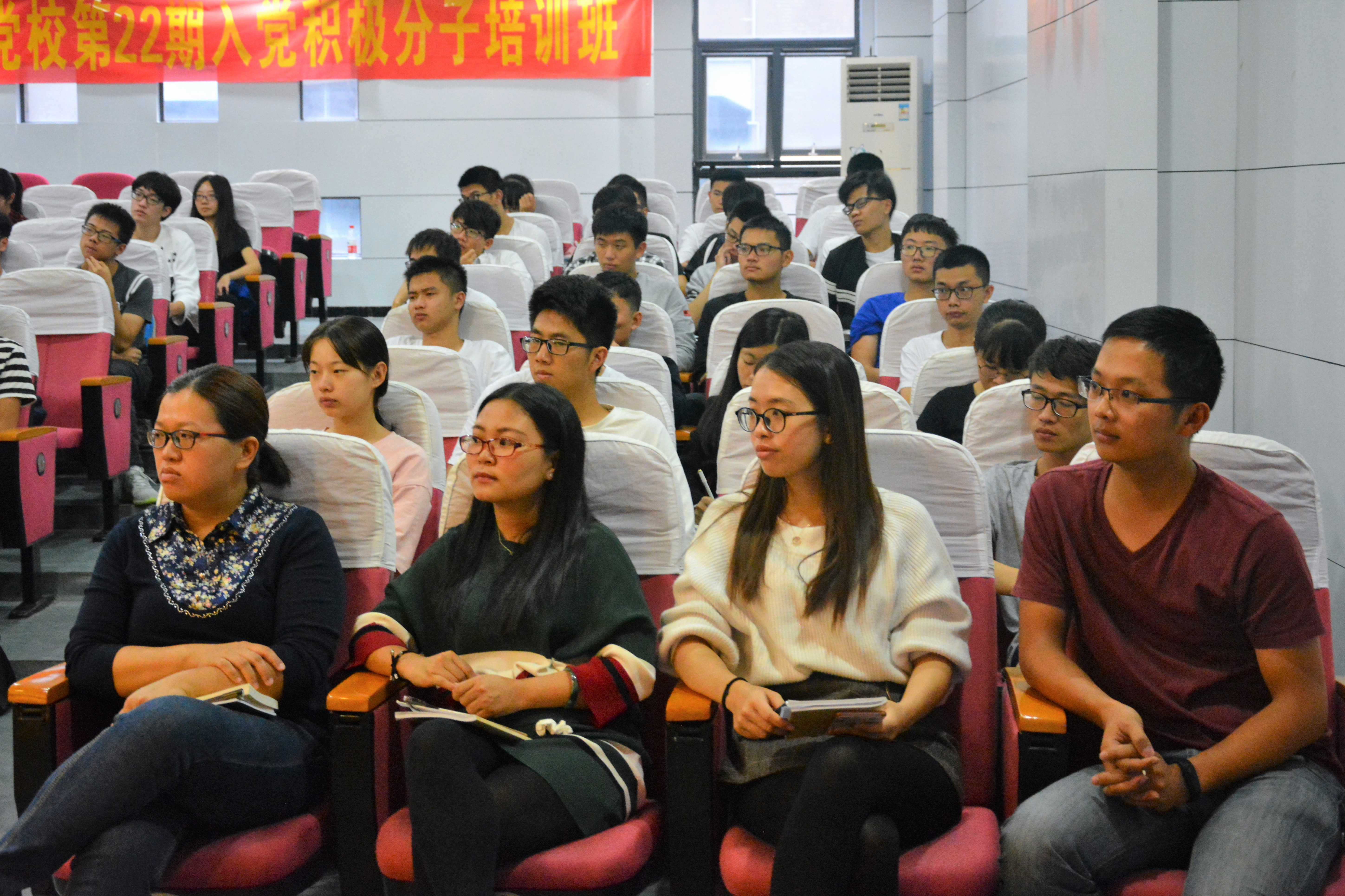 第二十二期党校开班典礼在新楚楼北230举行。此次党课的主讲人是院党委副书记黄国辉老师,莅临现场的还有2016级辅导员陈荟芳与谢仁栩老师、2017级辅导员梁艳华老师、2014级兼职辅导员徐心婧老师。共有95名学员参加了本次培训。