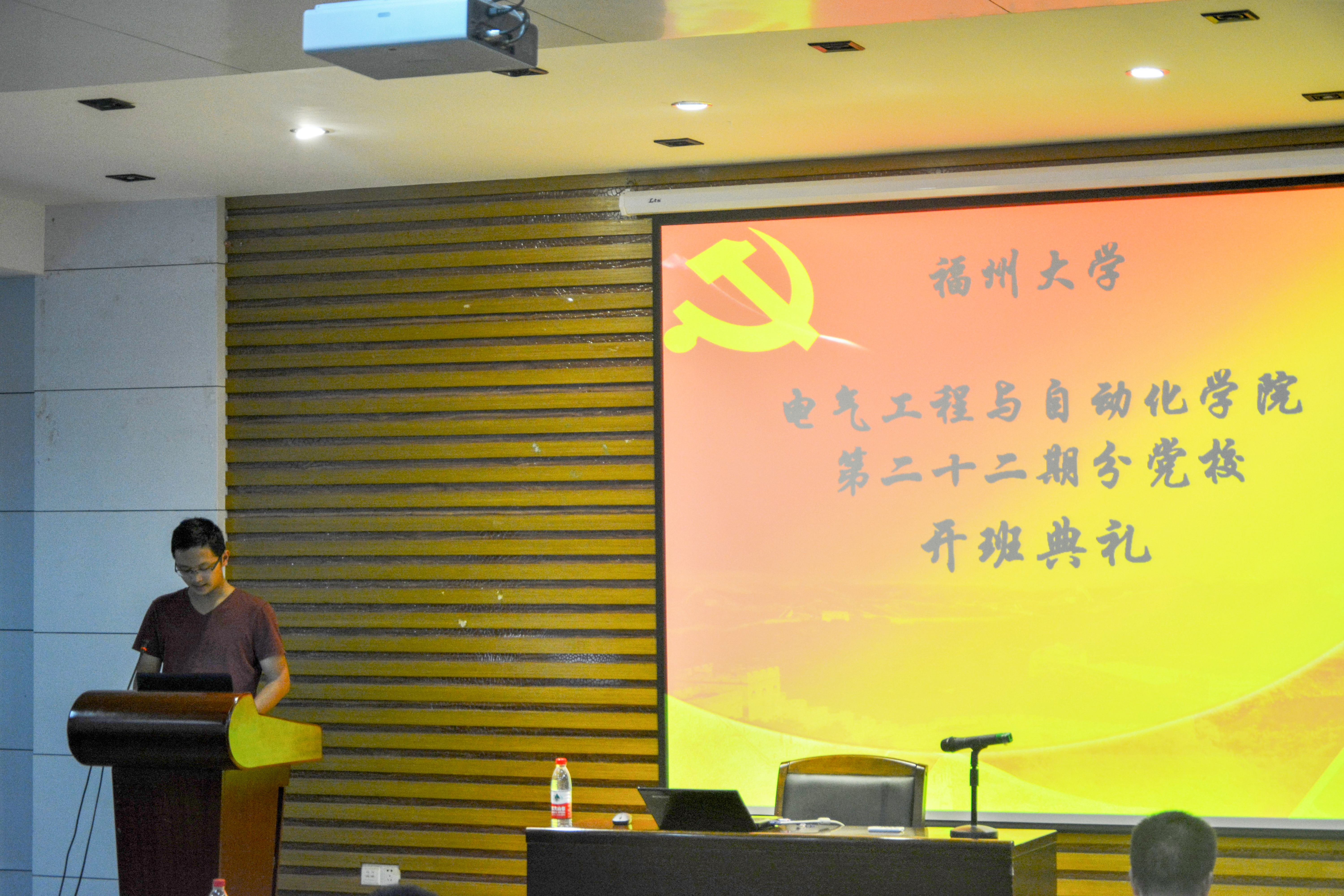 典礼在高亢的国歌声中拉开序幕。接着,学生代表黄淑宁上台发言。他阐述了学习党课的目的与党课学习的内容,体现入党积极分子对党的憧憬与信任。