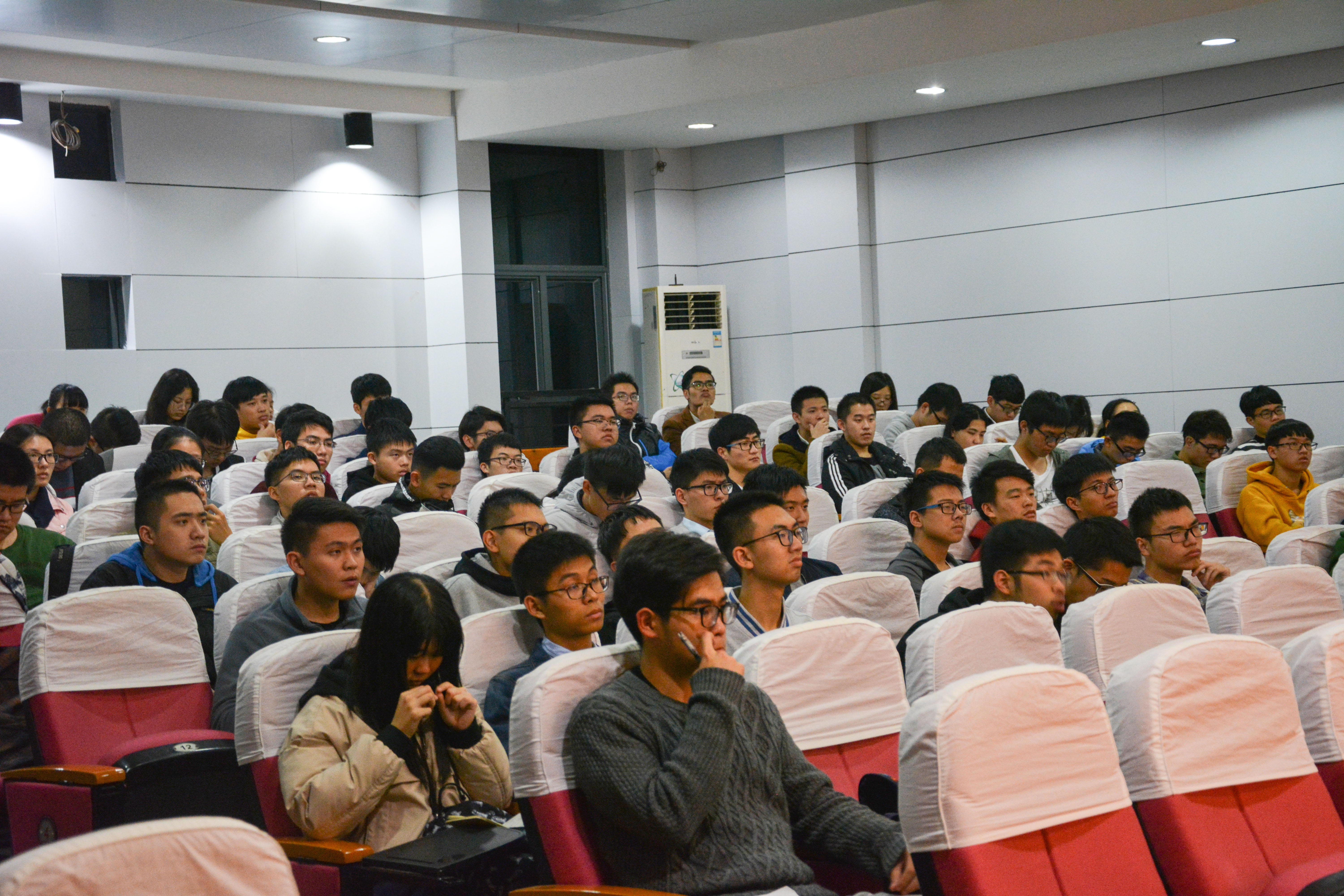 詹志华教授接着又从创新、协调、绿色、开放、共享五个方面讲述了中国的新时代发展模式,同学们认真听讲。最后詹志华教授向在场的同学提出怎样青年如何发展的建议,赢得了全场观众的赞同与喝彩。