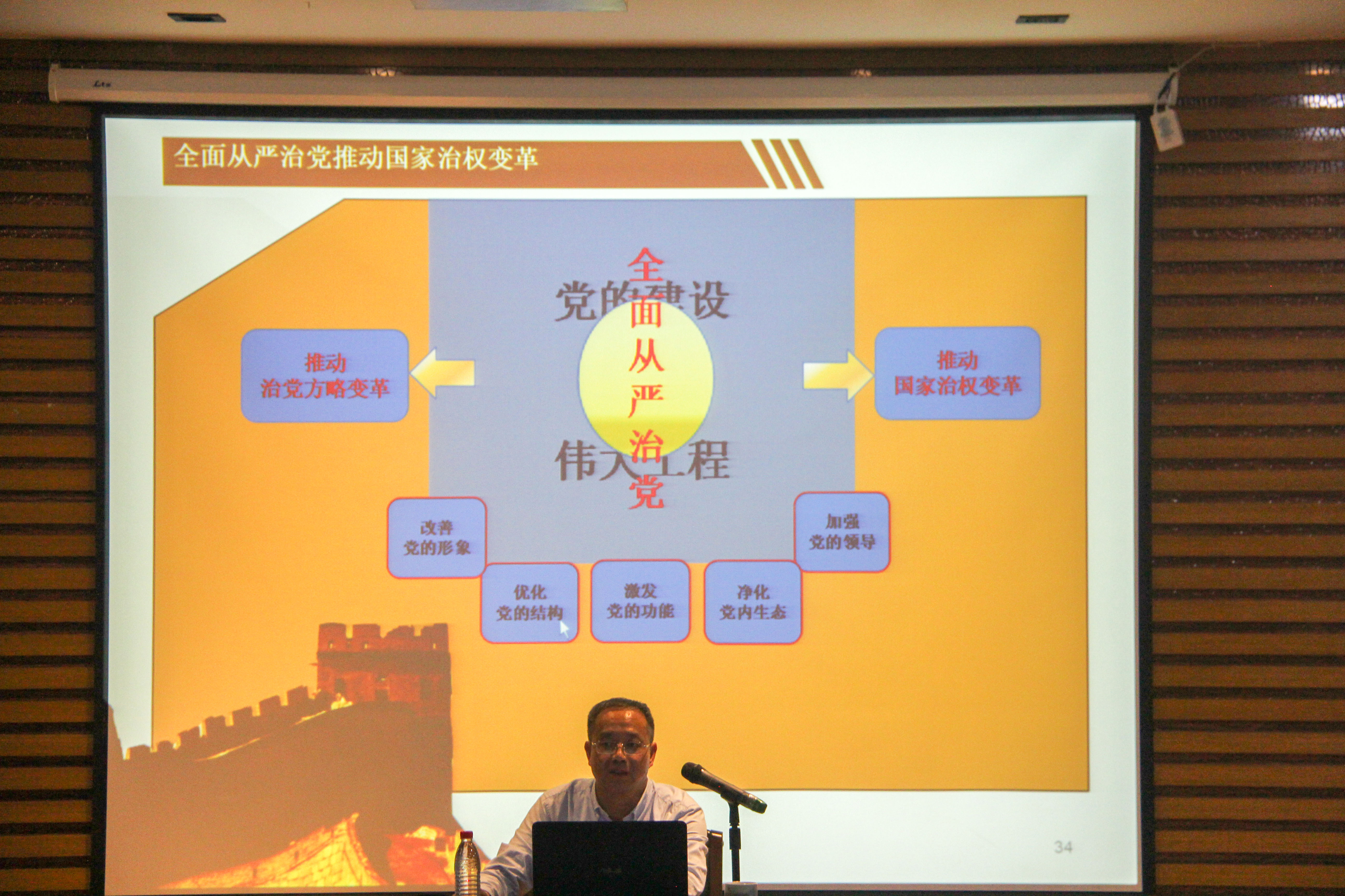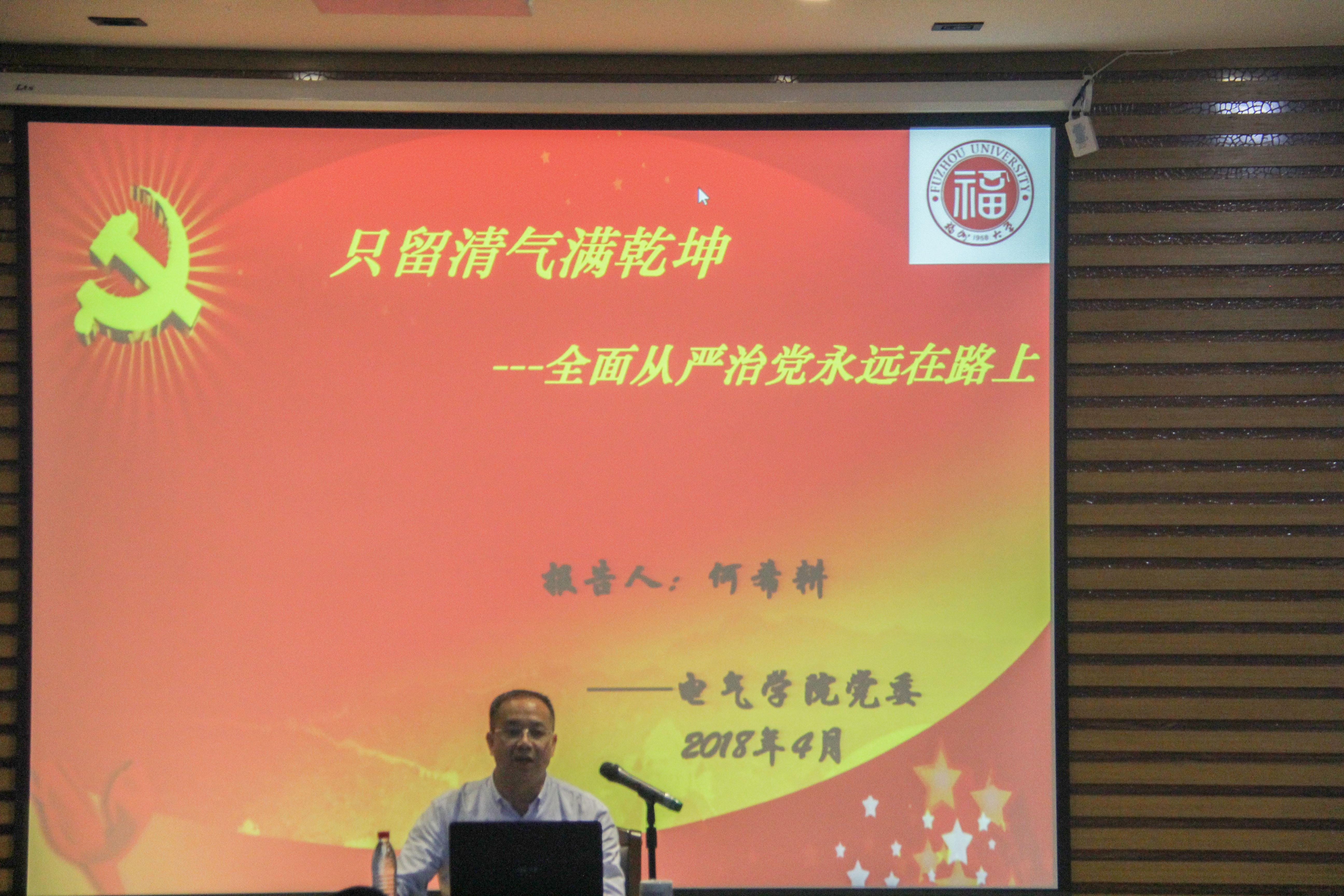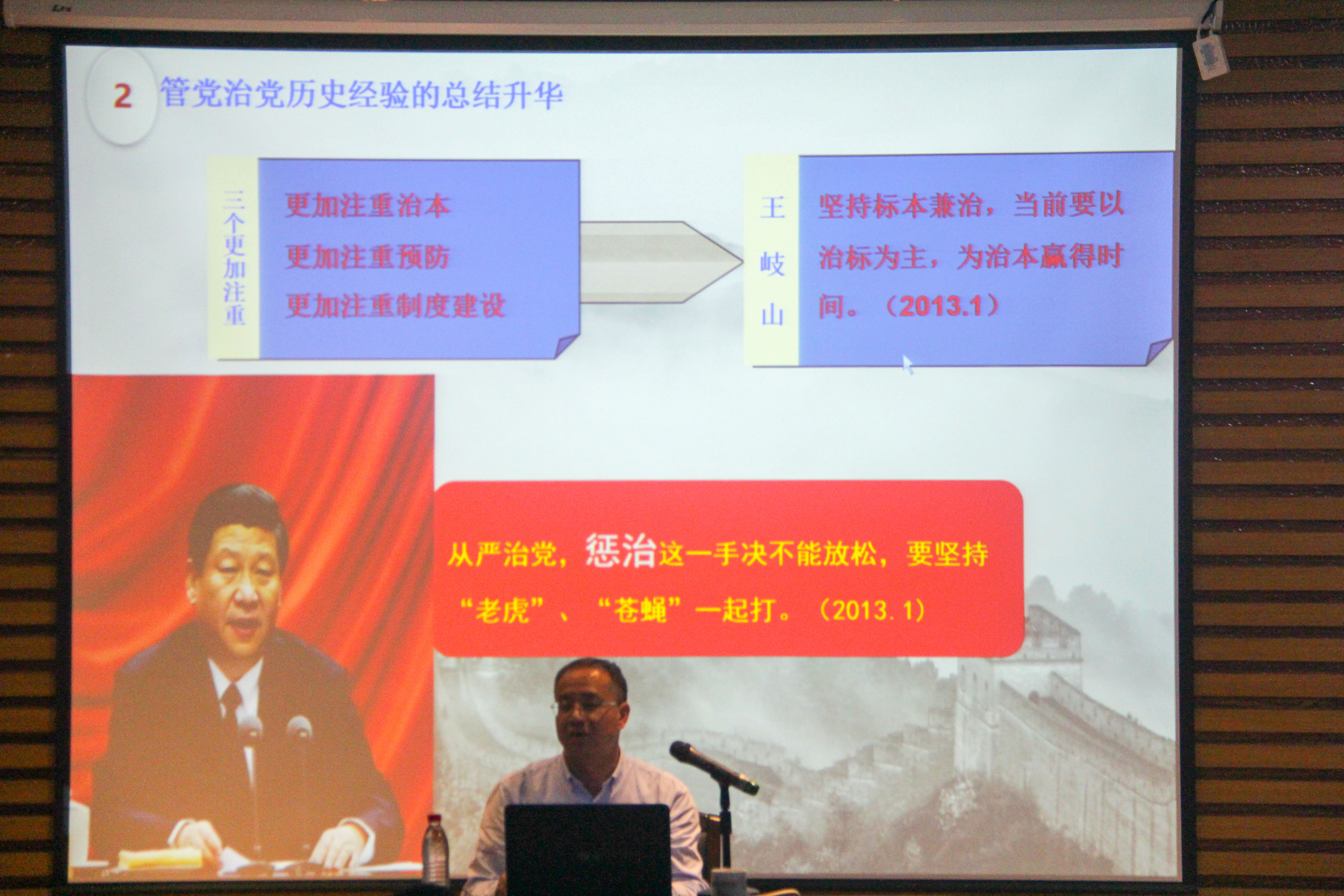 党委书记何希耕研究员于5月3日在新楚楼北230为学生支部书记和第23期入党积极分子讲授了“全面从严治党、永远在路上”的党课。