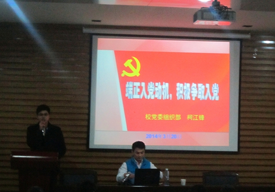 党委组织部的柯江锋老师为积极分子们上了一堂主题为“端正入党动机,积极争取入党”的党课。