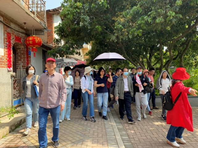 带着感动,学院全体教职工抵达本次出行第二站——双福回族村。双福村人口1896人,其中郭姓少数民族人口1668人,占村总人口比例的88%。双福村曾先后被莆田市列为市级社会主义新农村建设试点村,被国家民委定为少数民族特色村寨建设试点村,更是社会主义新农村建设的缩影之一。鳞次栉比的红砖厝、厝前小桥流水,有客泛舟,河流两侧村民栽种的龙眼树花繁叶茂,三角梅迎风怒放;田间稻苗初种,紫茄开花,玉米生长,白鹭嬉戏……有老师玩心起,大喊一声,“惊起一滩鸥鹭”,眼前一幕不正是王维笔下“漠漠水田飞白鹭,阴阴夏木啭黄鹂”?村落广场前,数百年前的郭氏家训石碑魏然屹立,百年前村办学堂屋舍虽已蒙尘,但兴学重教的理念在强调“科教兴国”、“人才强国”的今日依旧熠熠生辉。