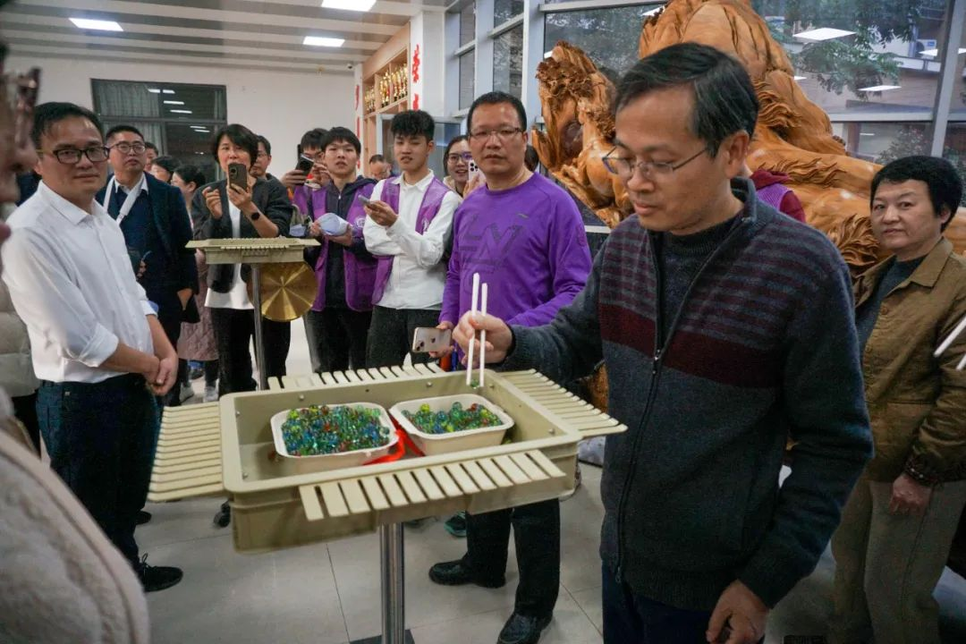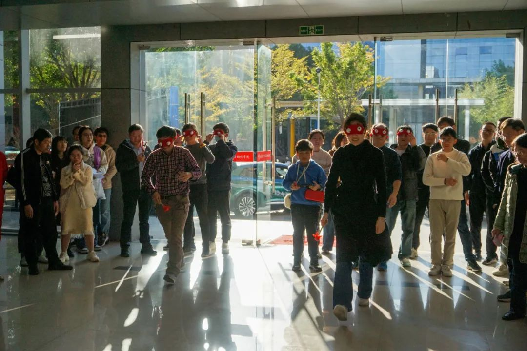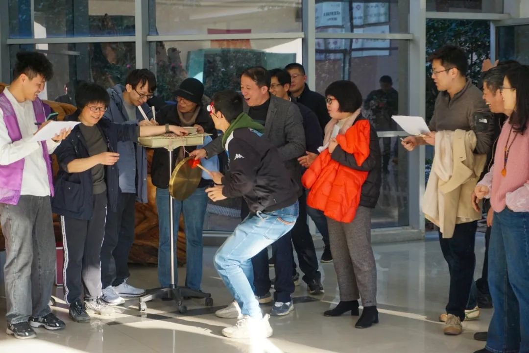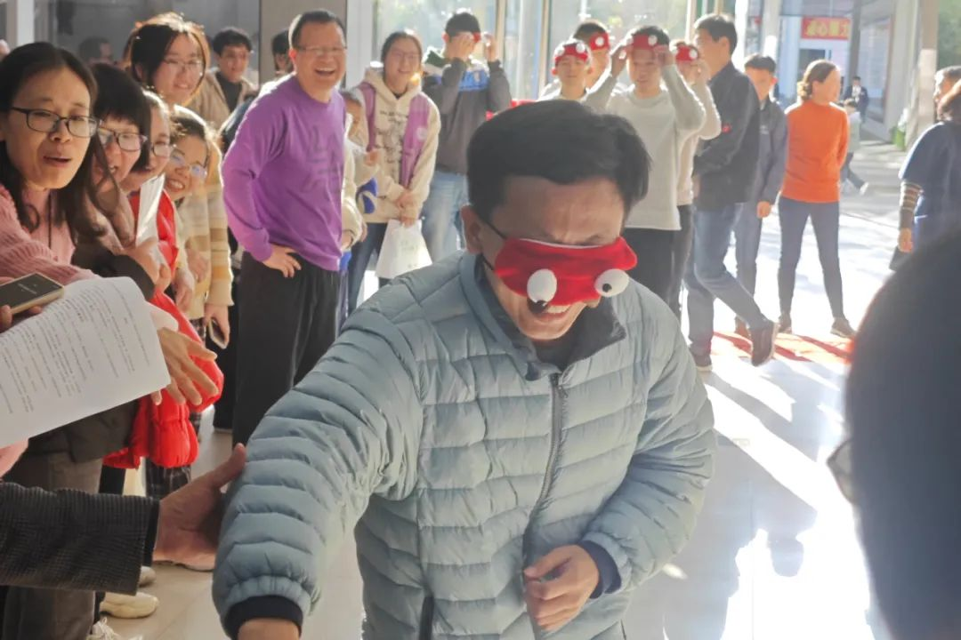 “瞎子敲锣”比赛既紧张激烈又趣味横生,现场欢声笑语此起彼伏。老师们戴上眼罩,凭借默契的配合,挥动手中锣棒。欢快的笑语与锣声交织在一起,场面热闹欢腾。每一位参赛老师的脸上都写满了喜悦,欢笑声在现场传递,仿佛化解了一切的疲劳。
