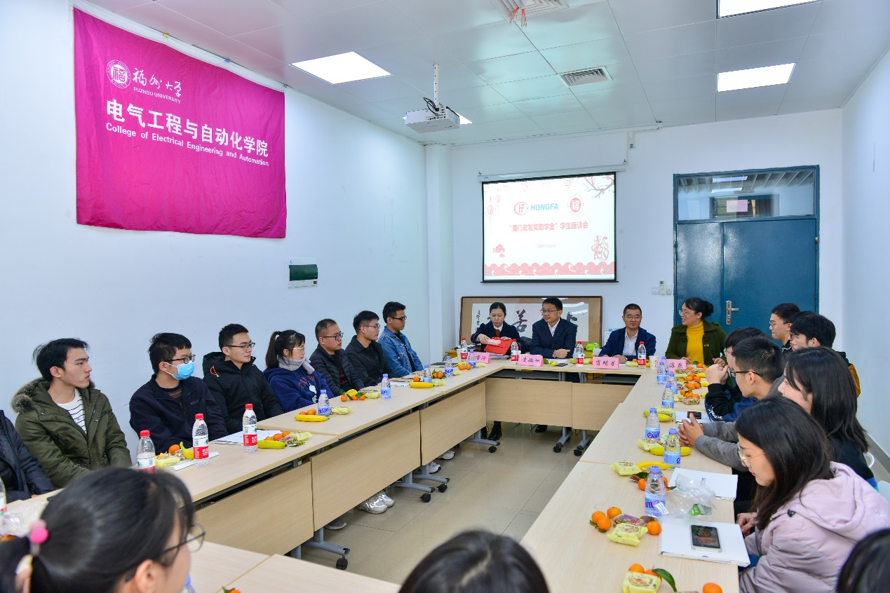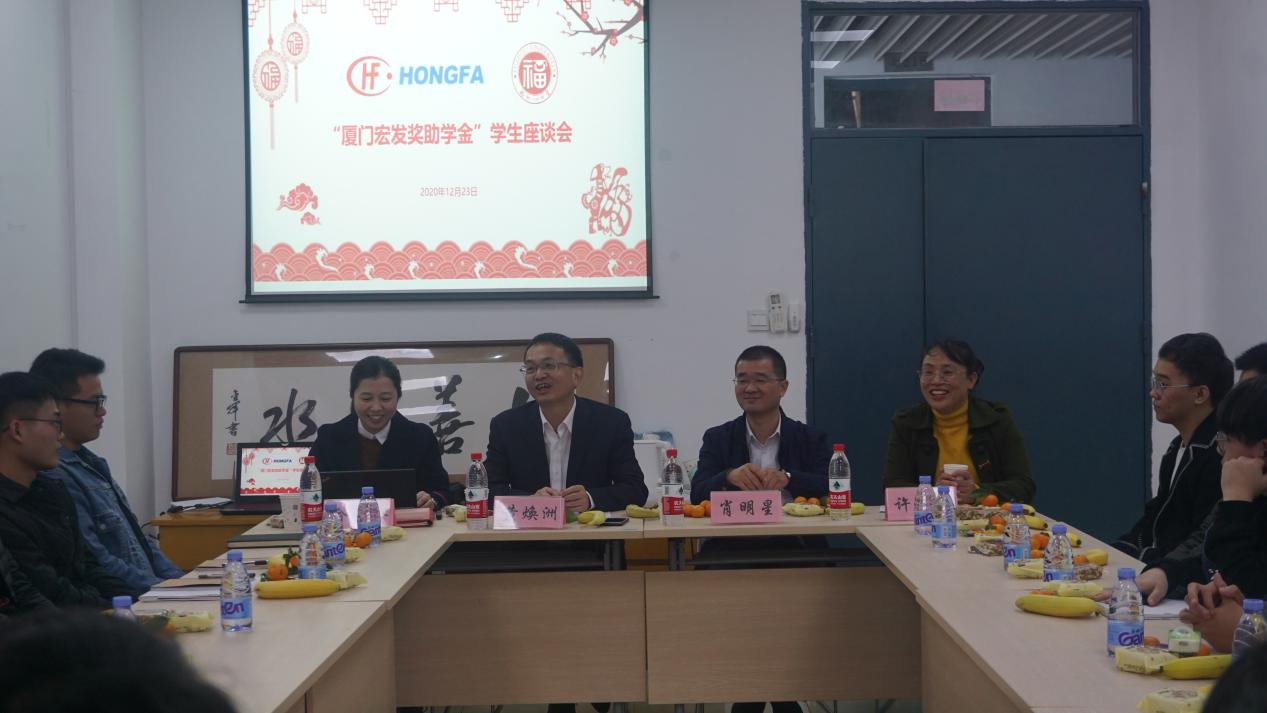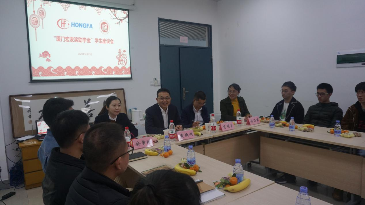 与厦门宏发电声股份有限公司于新楚楼北211会议室成功举行了“厦门宏发奖助学金”学生座谈会,企业领导走入学生间,与同学们进行了融洽的交谈。