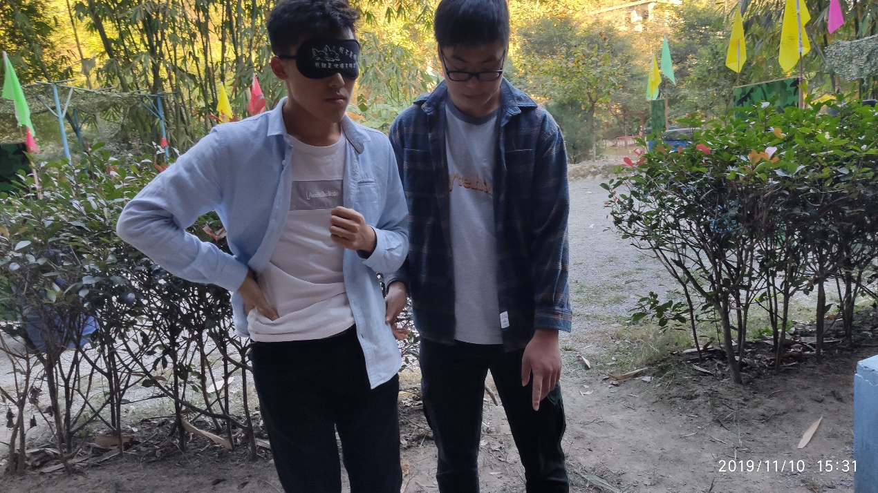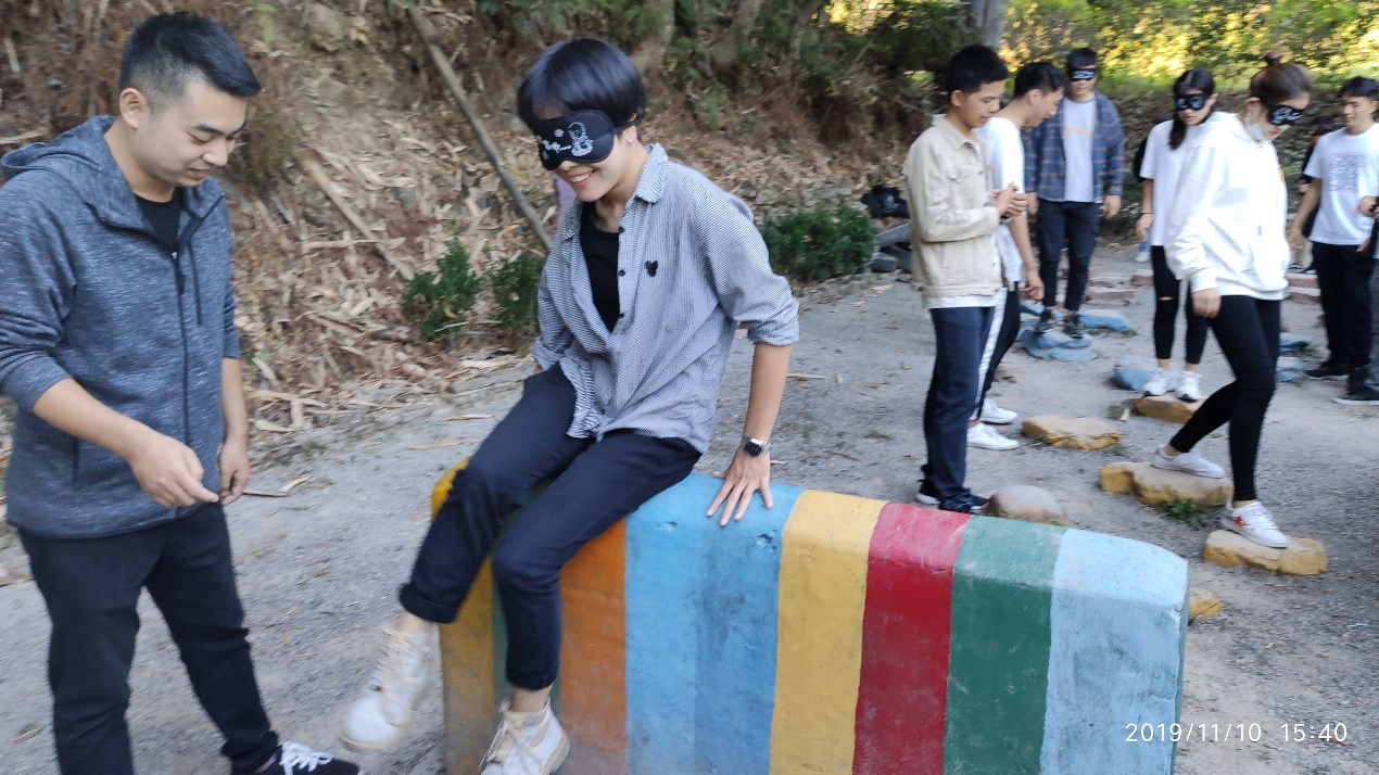 在大家体验了溜索带来的高空快感后,紧接着就是本次团建的重头戏---突出重围,队员们两两合作,一名队员蒙上双眼,另一名队员指导同伴通过地雷阵、壕沟、土坡、独木桥等障碍。在这片充满路障的土地,可以看到队员之间良好的配合和有效的沟通,把自己交给你,你的指令便是我前进的脚步。