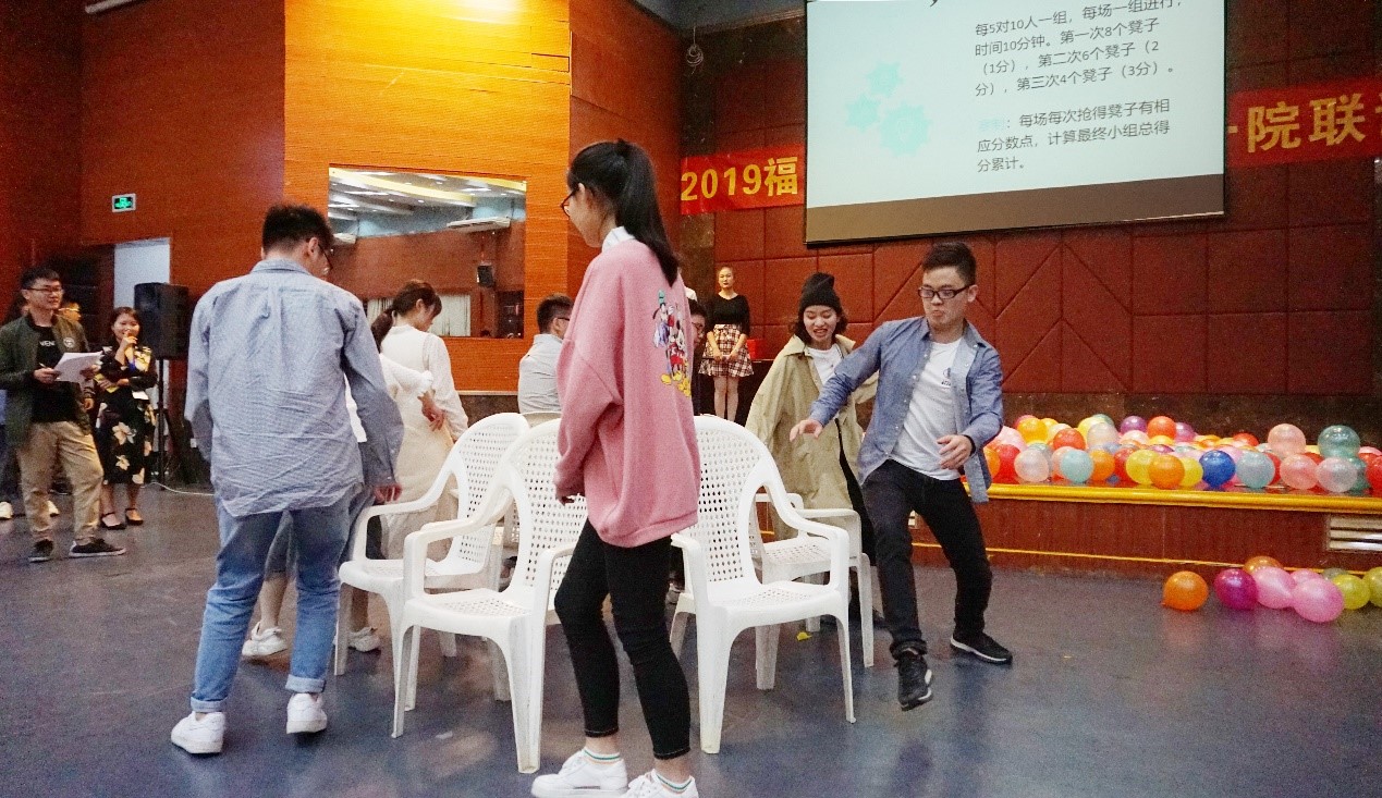 游戏分为十人一组,时间为十分钟,第一次八个凳子,第二次六个凳子,第三次四个凳子,每轮抢的凳子有相应的分数点,并累计作为小组的最后得分。爱情中总有一个人要做出让步,退出一些“竞争”,互相谦让才能让故事继续下去。