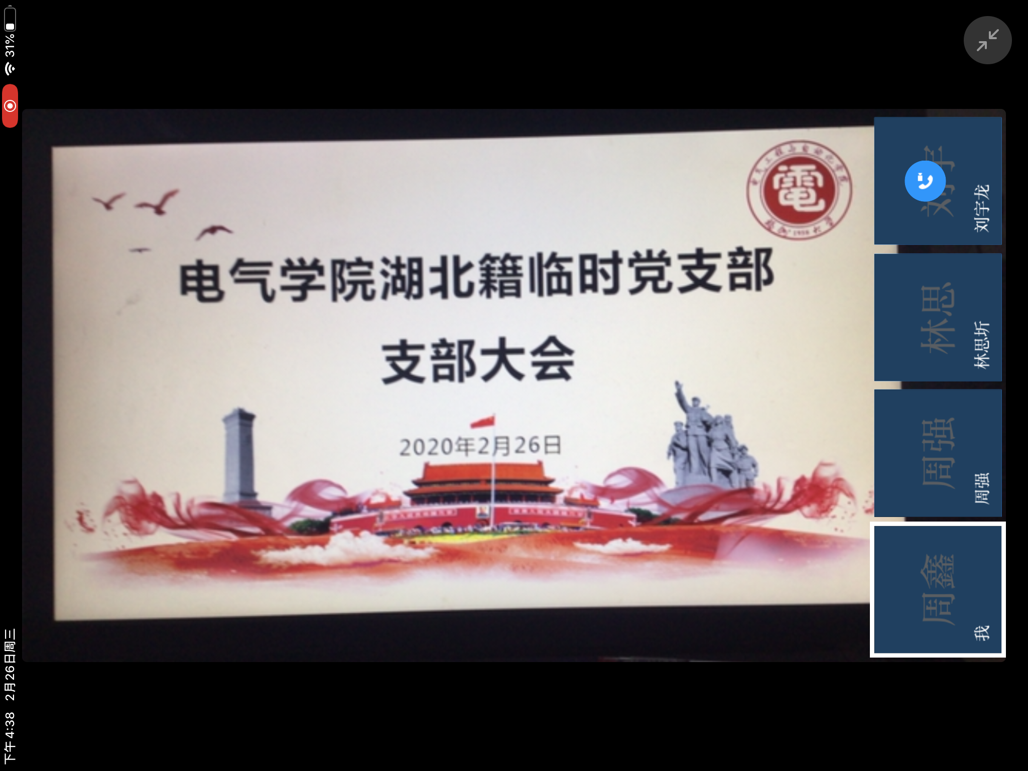 成立了湖北籍临时党支部。该党支部由研究生和本科生在内的9名湖北籍党员组成。2月26日下午,党支部在学习强国的视频会议上召开了“众志成城,共同抗‘疫’”主题线上活动。