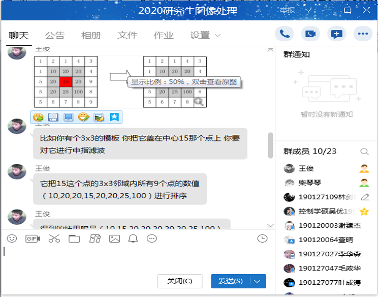 原本应该是在教室里正常上课的我们,因为此次的疫情而采取了线上教学方式,在正式教学前期,王俊老师通过建立QQ群的方式,给我们上《计算机图像处理》这门课。考虑到部分同学家里的设备限制,老师通过文字方式给我们讲述这门课的内容,通过简短的文字以及列举图例,尽可能的使我们能懂得所要讲述的内容,这样的方式让同学们课后可以随时进行复习。同学们也很积极配合老师的教学,按时按点进行在线上课。面对首次进行网上授课的情形下,无论是老师还是我们学生,都积极认真的配合,通过这样子的教学方式,更能表达出我们“停课不停学,延期不停教”的决心。