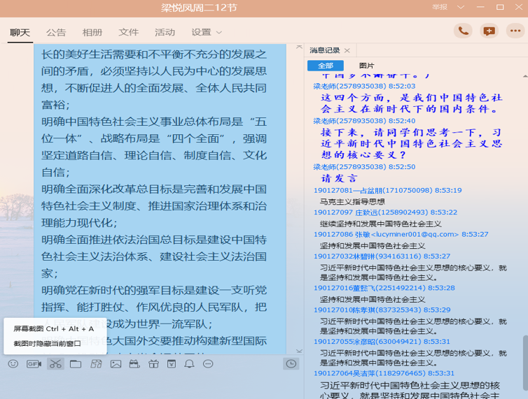 虽然每周只有两节课,同学们却收获满满。无论是前期的课件制作还是课上的知识扩充,梁老师准备的都非常充分。老师们的课堂内容丰富多彩,经常会穿插一些视频在课程中,通过观看视频可以让大家更容易理解和吸收课堂知识,同时也让原本枯燥无味的课程学习起来变得有滋有味。课堂上大家积极讨论,气氛非常活跃,让原本大家眼中枯燥无味的思政课变得更加轻松、有趣。通过三周的网上学习,我们从不适应线上教学到依赖云课堂,疫情虽然阻挡了我们汇聚一堂,但阻挡不了我们的求学之心,感恩当今的中国,让我们做到了“停课不停学”。