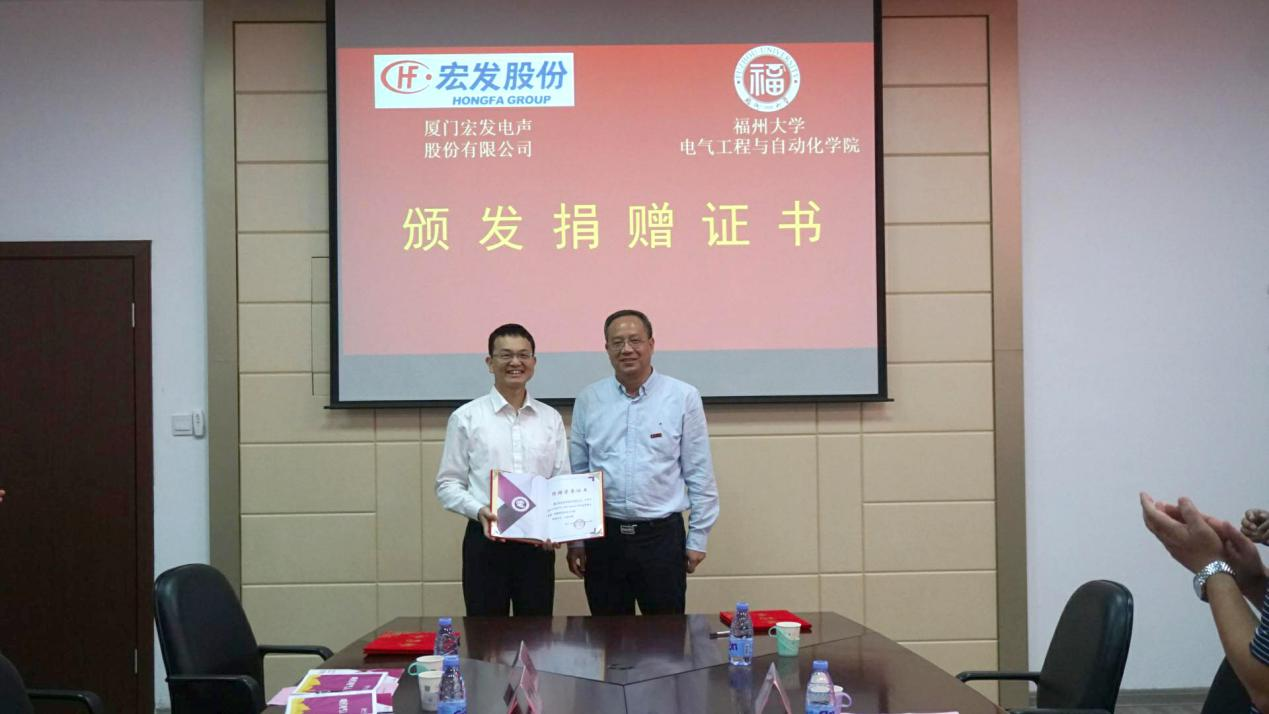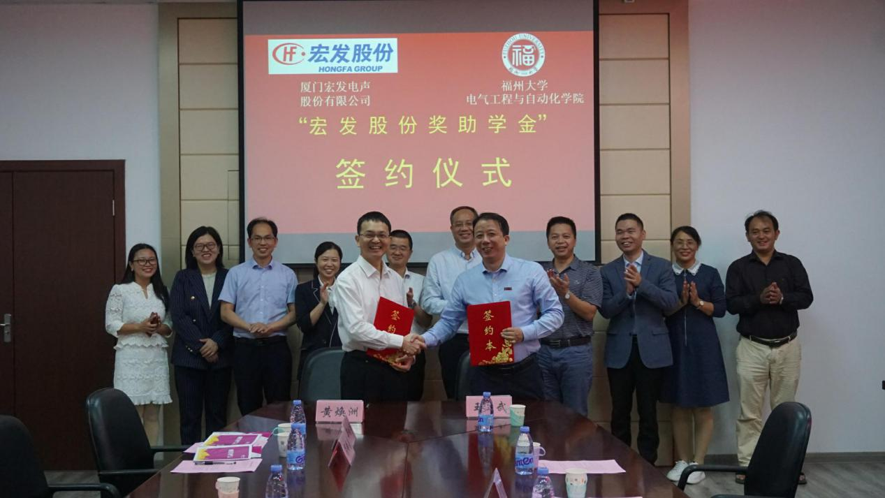 与厦门宏发电声股份有限公司在学院南212会议室成功举行了“宏发股份奖助学金”签约仪式。