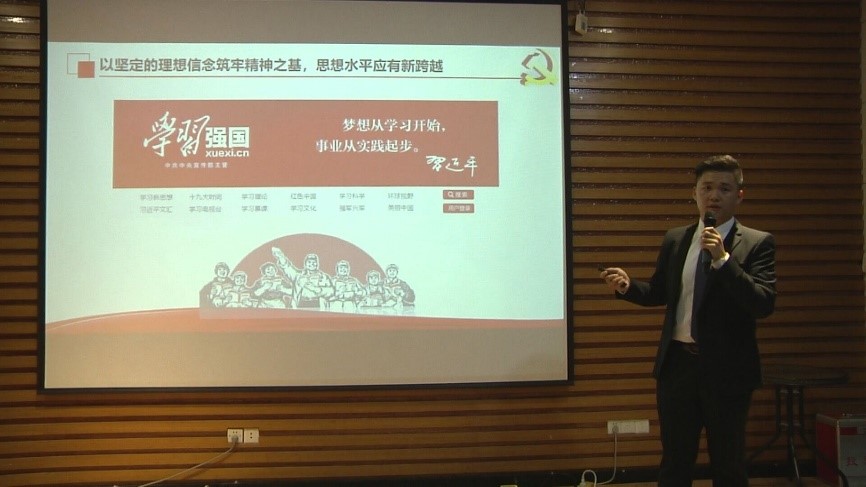 第五位出场的是电气工程研究生第二党支部书记万志松,他的微党课题目是《释读入党宣言 坚定为党初心》。万志松同志以一段格外引人振奋的入党誓词开始他的微党课,向我们介绍了党史的第一份入党誓言从何而来并对入党誓言进行解读,并指出新时代我们作为研究生党员要求知求新,从身边事做起。