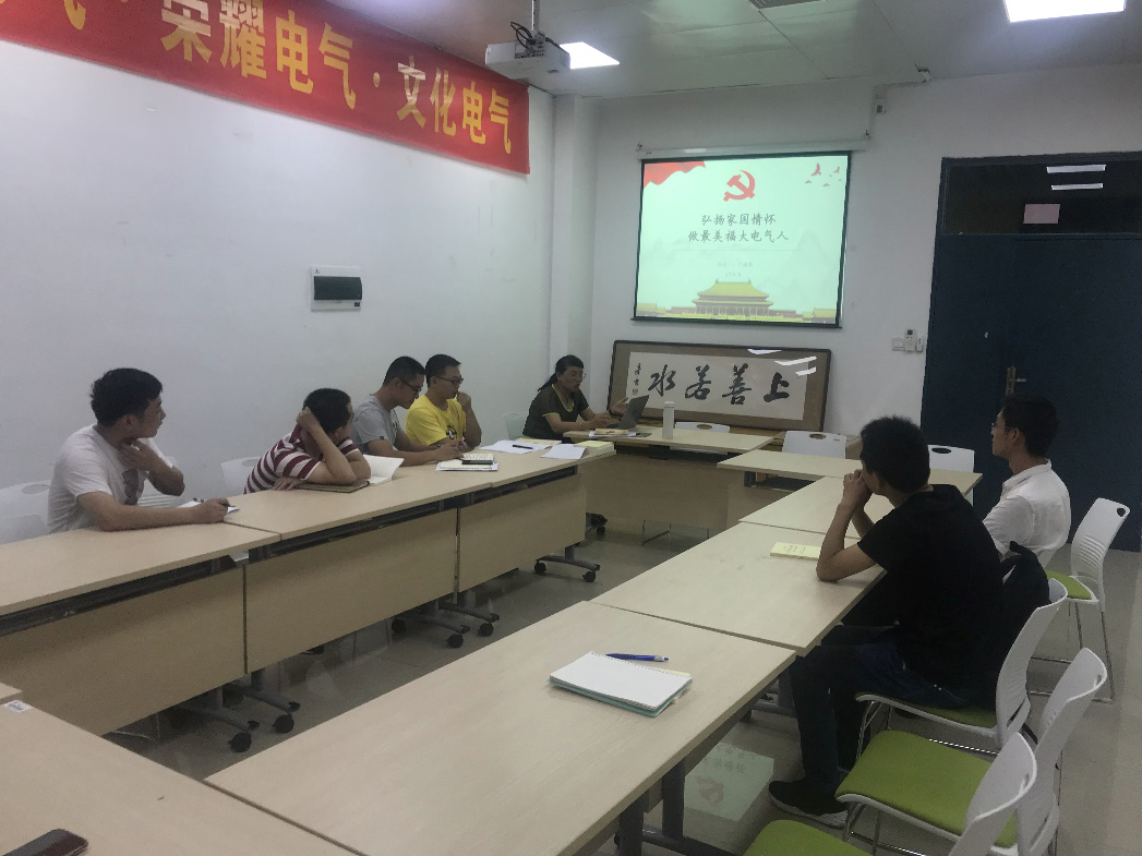 本次支部会议的第一个环节是由许海燕书记给我们带来的微党课,其主题是《弘扬家国情怀做最美福大电气人》。首先许海燕同志从最近备受全国人民关注的港独事件为素材进行分析,紧接着分析为什么要爱国以及怎样爱国进行详细的论述。最后激励作为博士研究生的我们,在学好专业技术的同时要不忘初心牢记使命,始终心系国家和民族的前途命运。