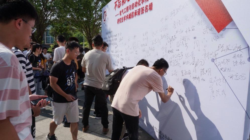 研究生各党支部及研究生会于新楚楼组织开展“学术电气,诚信有我”签名活动,此次活动面向麻豆社