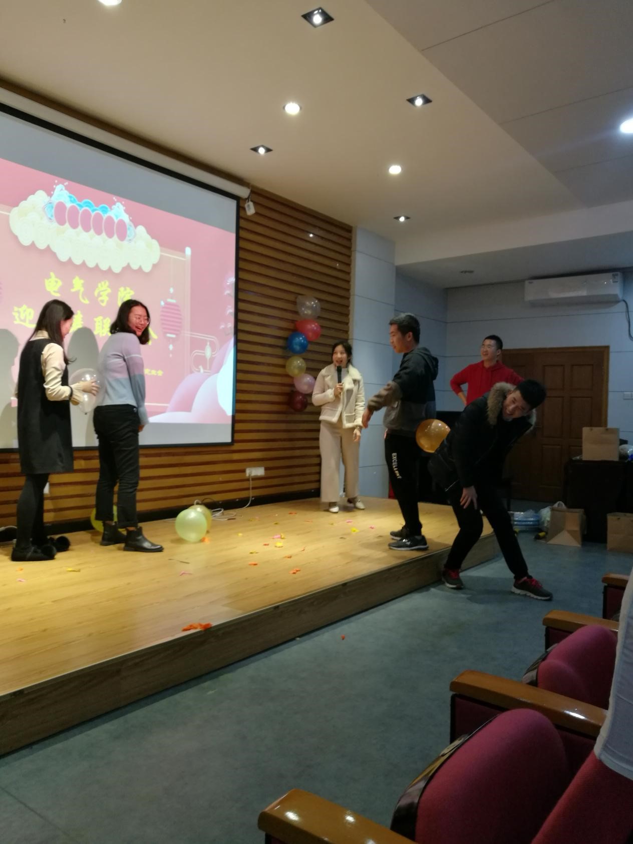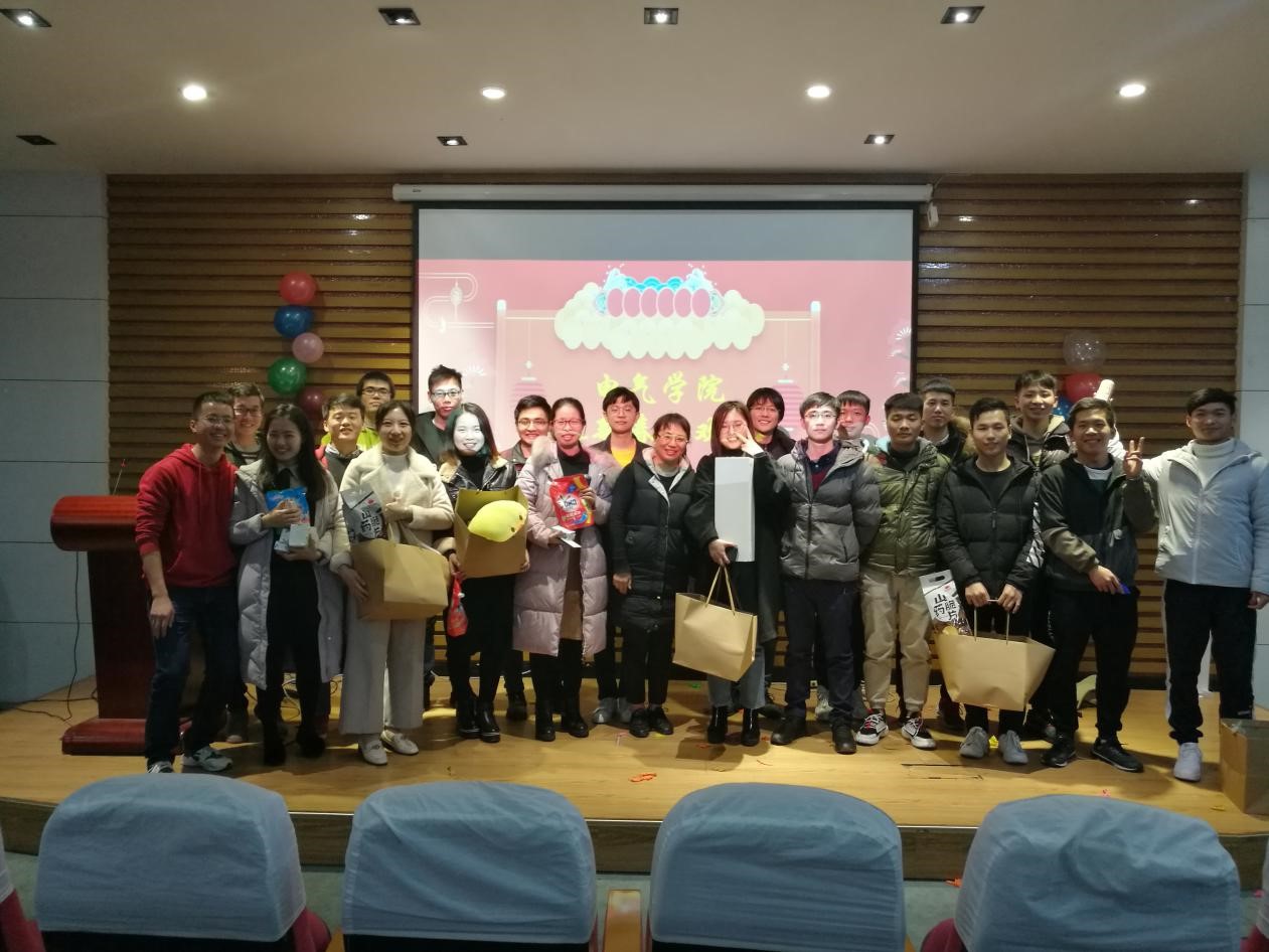 研究生迎新春联欢会于新楚楼北230成功举办。晚会由研会文化部严静、学术部苏达毅主持,参加本次联欢会的有全体研会成员、各党支部干部、各专业负责人以及研究生辅导员许海燕老师。举办此次晚会主要是借喜迎新春的契机,感谢过去一年中同学们为学院工作的辛勤付出,让大家在活动中增进交流、提升集体凝聚力,丰富寒假的科研生活。经过一个学期紧张的科研学习和学生工作后,研究生干部们在联欢会中得到放松,喜迎金猪年。