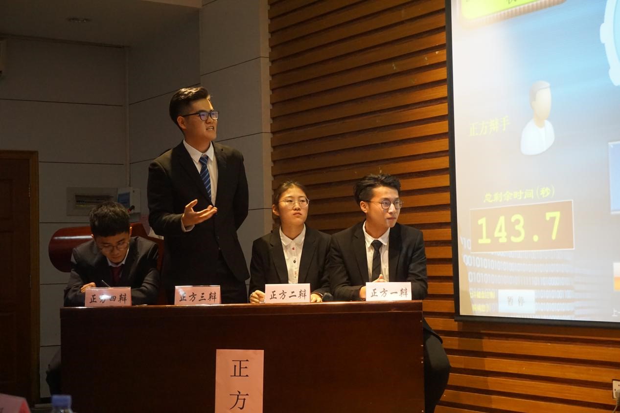 辩论赛是一场不见硝烟的战争,一辩陈词完毕,双方的二、三、四辩也已蠢蠢欲动。双方辩手充分把握时间,引经据典,各抒己见,都力求在气势上压倒对方,整个比赛进入一个又一个高潮。赛后由评委张雨洁同学对参赛队伍的表现逐一进行了点评,她在肯定了参赛选手精彩表现的同时也给大家提出了一些指导性意见,对大家以后的发展大有裨益。