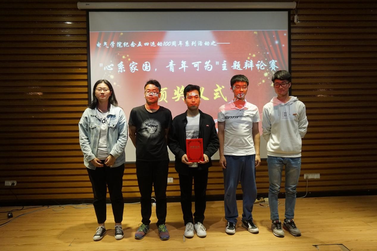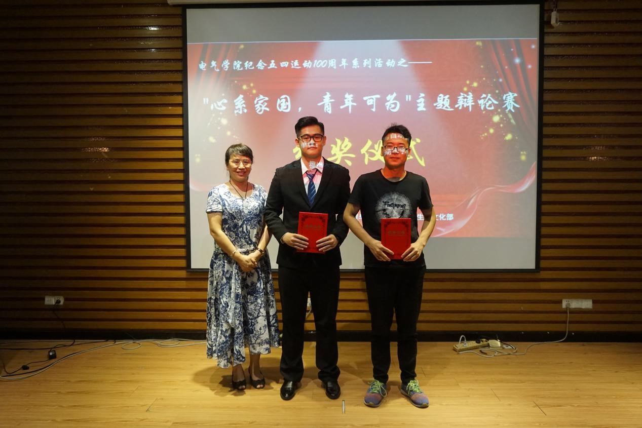 至此,近两个小时激烈地唇枪舌战终于落下了帷幕。获得一、二、三等奖的队伍分别是:“模电数电单片机啥也学不会队”、“小猪佩奇队”和“电气一队”。获得优秀奖的是:“老白最帅队”。最佳辩手分别是谢永鑫和张一博同学,最后由许海燕老师上台为获奖队伍和选手颁奖,并合影留念。本次辩论赛为同学们提供了一个展现自我、提升自我的平台,更将广大电气学子作为新时代新青年的激情与活力展现的淋漓尽致。