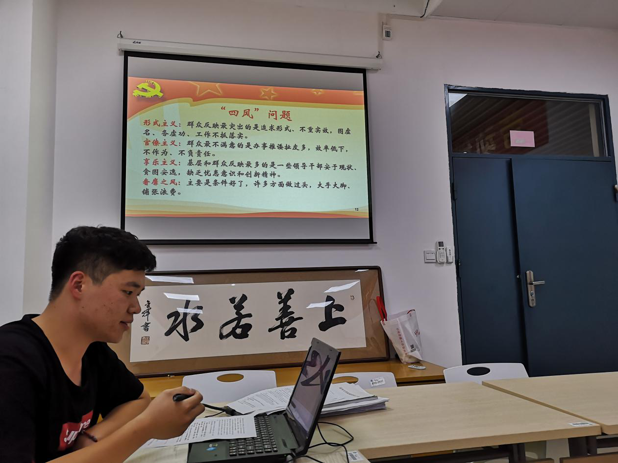 接着,支部书记带领支部全体党员同志进行“党风党纪”主题学习。以习近平总书记在中国共产党第十九届中央纪律检查委员会第三次全体会议上发表的重要讲话为切入点,强调身为一名研究生党员,我们要不忘初心,强化纪律,以身作则,知行合一,敢于亮剑,诠释青年党员的担当。在充分的讨论后,每一位党员都清醒的认识到“四风”问题严重违背党的性质和宗旨,是迫在眉睫、非解决不可的问题,同时对全面从严治党的意义有了更深刻的理解。