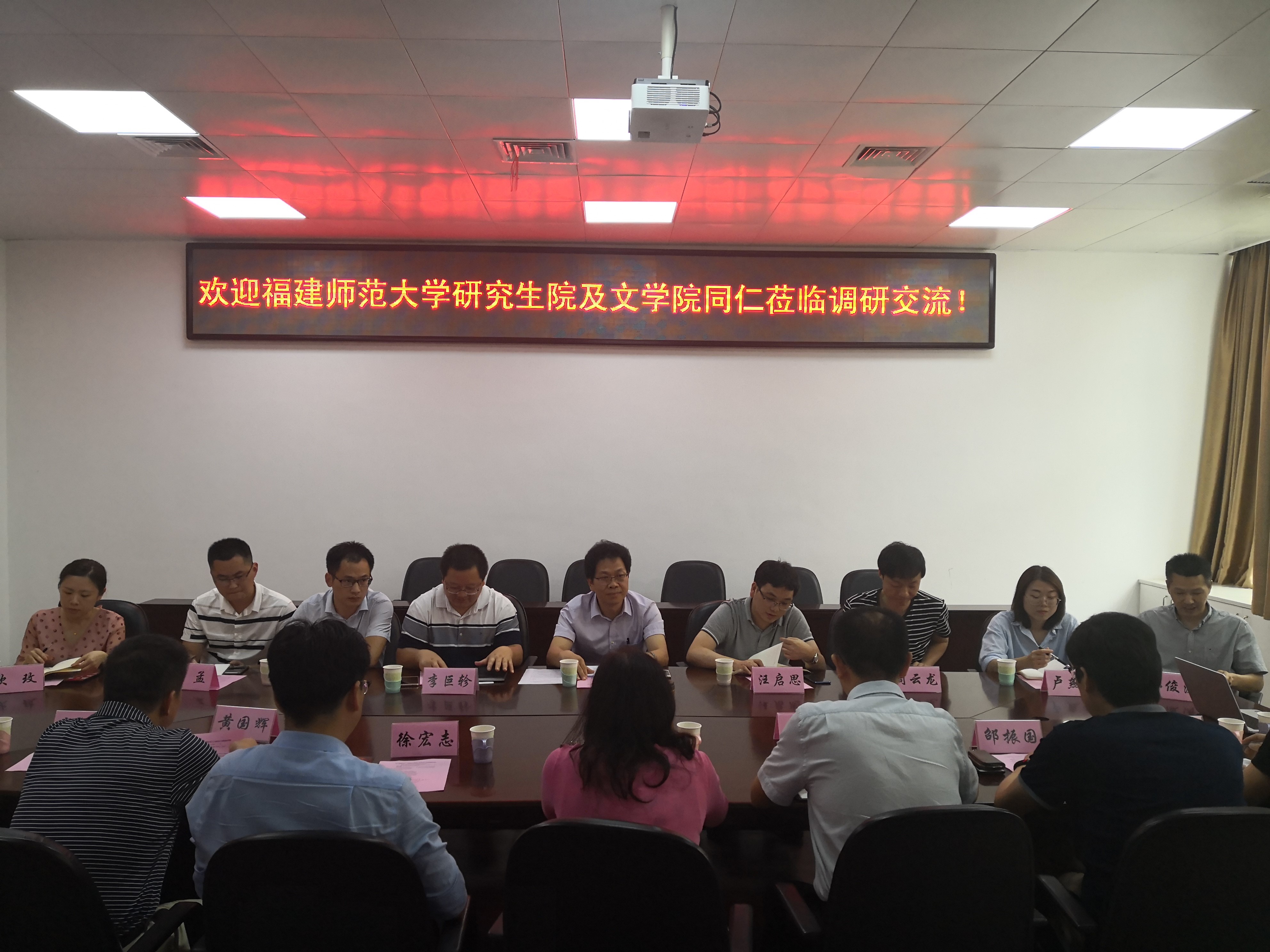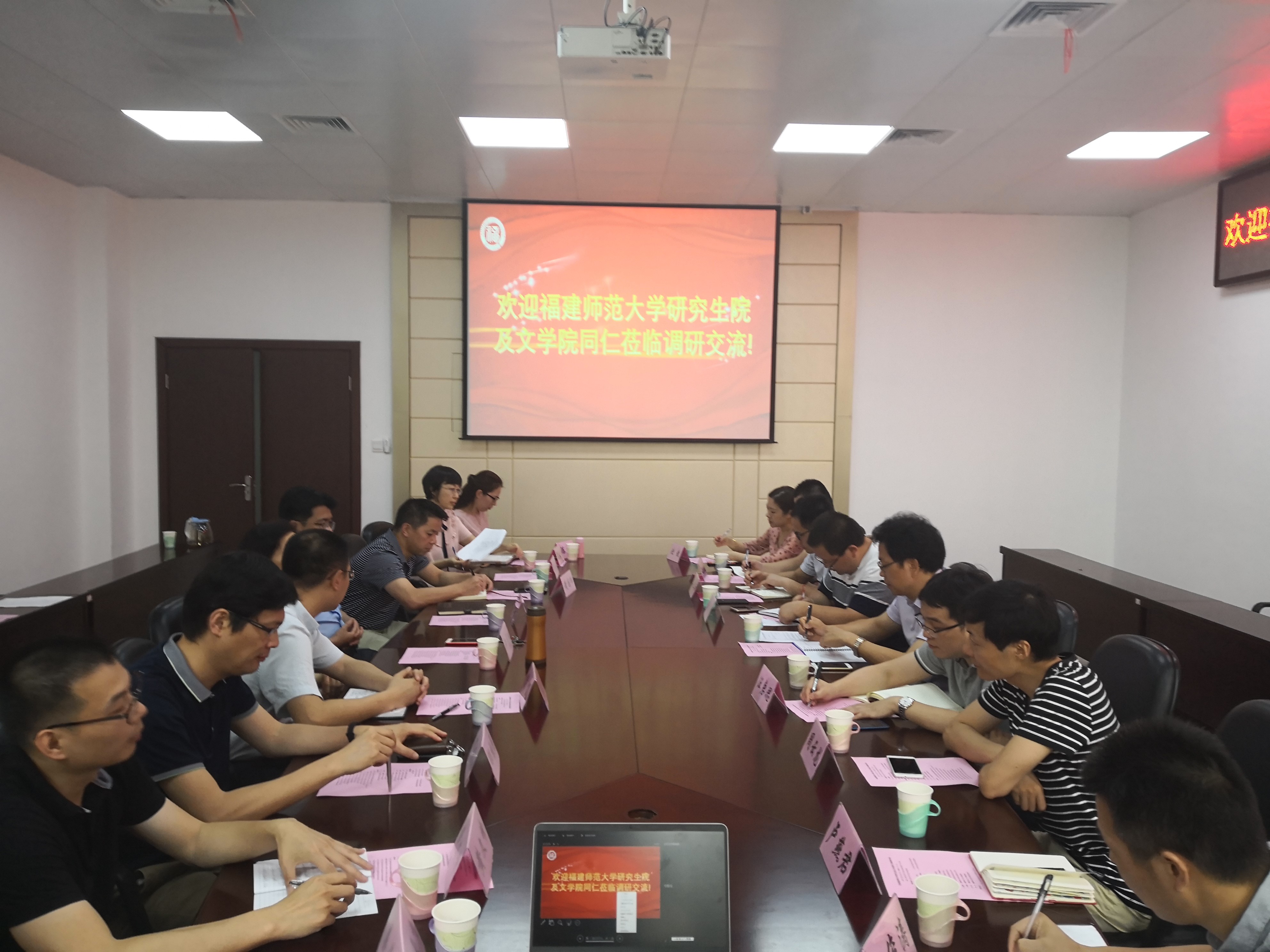 福建师范大学文学院党委书记李建华、副院长周云龙,福建师范大学研究生院副院长李巨轸,福建师范大学研究生工作部副部长汪启思一行9人参加了调研交流。福州大学学生工作部(处)、研究生工作部(处)副部(处)长徐宏志,麻豆社