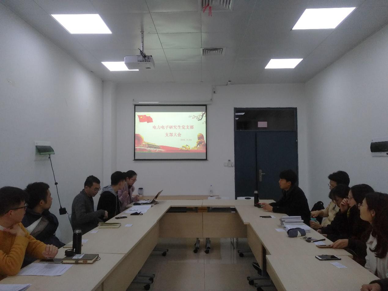 2018年12月09日,电力电子研究生党支部大会在麻豆社 北211召开。本次会议主要包含支部接收预备党员和“党风党纪”教育两个内容。