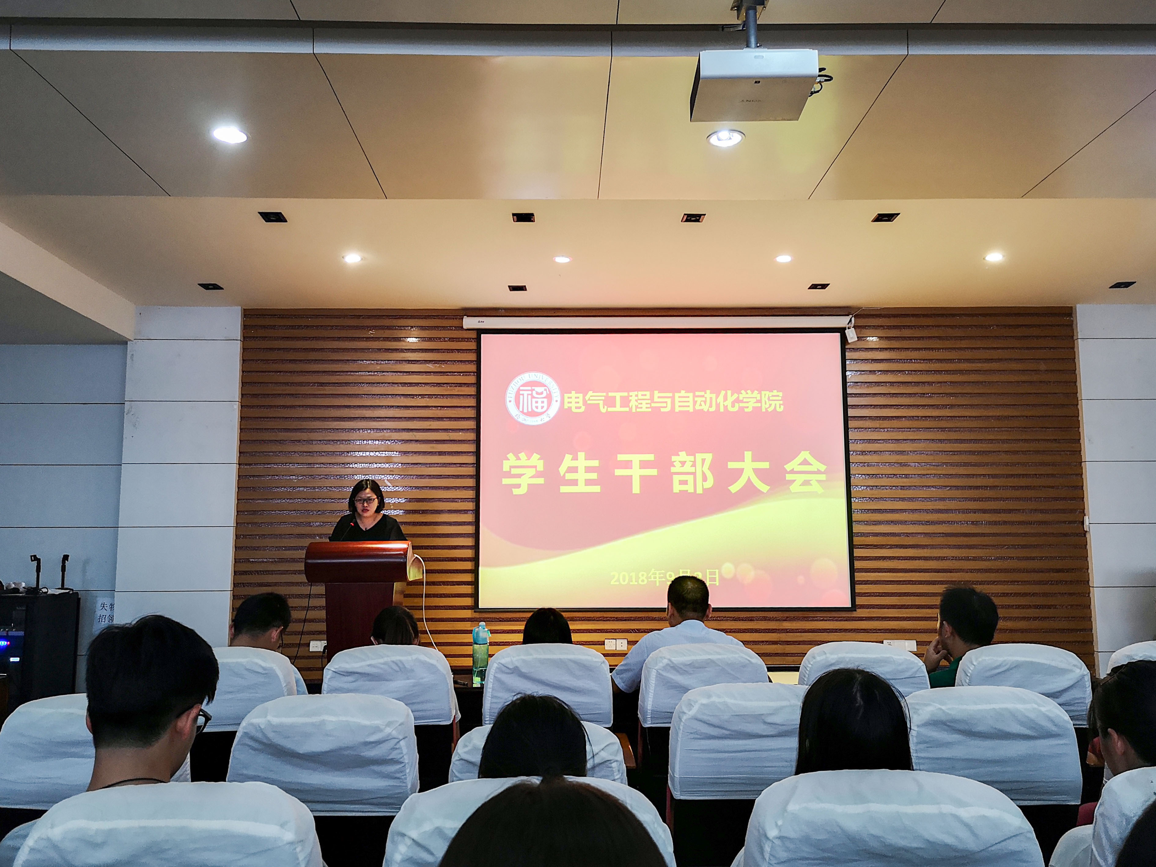 学生在各方面都取得了极好的成绩,尤其在科技创新方面,在各类大赛中名列前茅。沈书记提到10月份学校将迎来六十周年校庆,希望大家能够踊跃参与各项活动。接着沈书记对学院2018年团学工作进行了总结计划,包括学院迎新、院运会、校运会以及干部换届等要点,并对本学期工作寄予厚望。