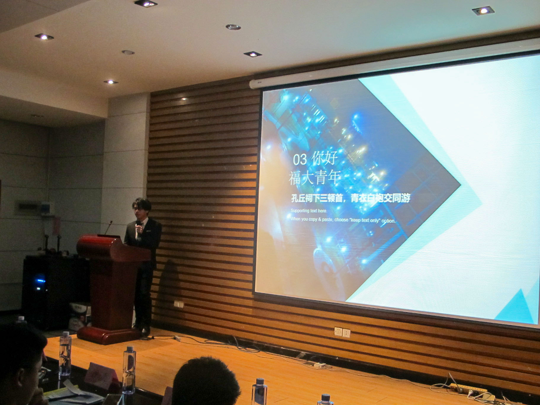 团委书记沈庆斌老师上台进行总结,他分享了四点建议:团立项活动要紧扣主题,各班在紧密联系“明德至诚六十载”的同时,也需要关注“四进四信”的内容;要注重活动成效,用精准数据说话;要注意多渠道、多形式宣传报道,提升活动影响力;展示环节主讲人的自信气场很重要,表达内容要丰富,逻辑清晰,情感充沛,感染力强。