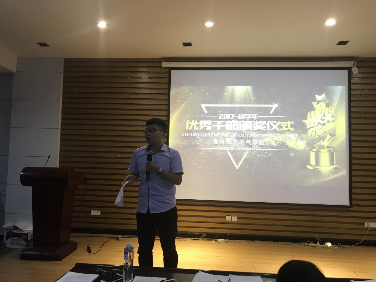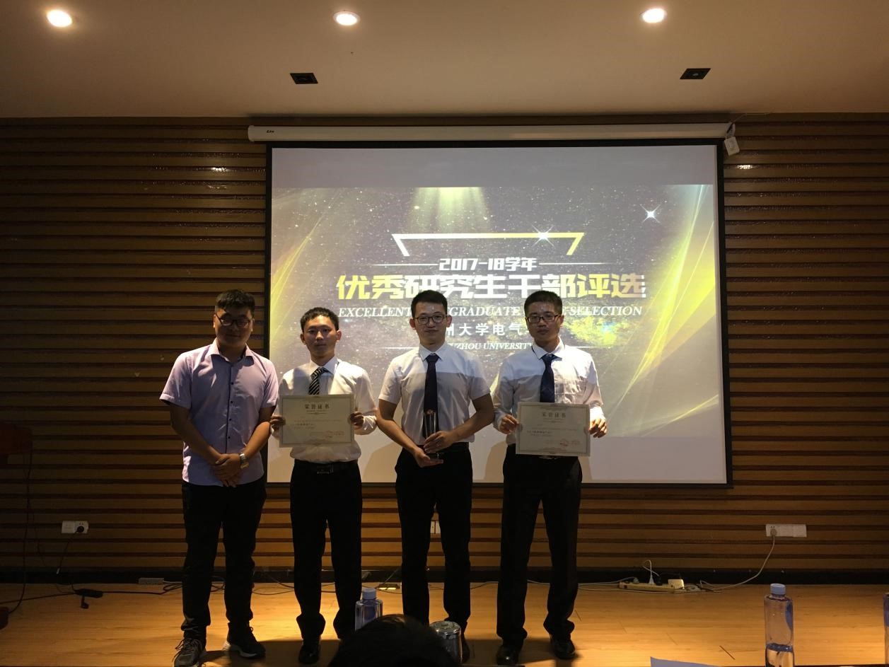 获得“最佳党支部书记”荣誉称号的是:电力电子党支部何幸;获得“优秀党支部书记”荣誉称号的有:自动化党支部谢仁栩、电机与电器党支部黄李威。