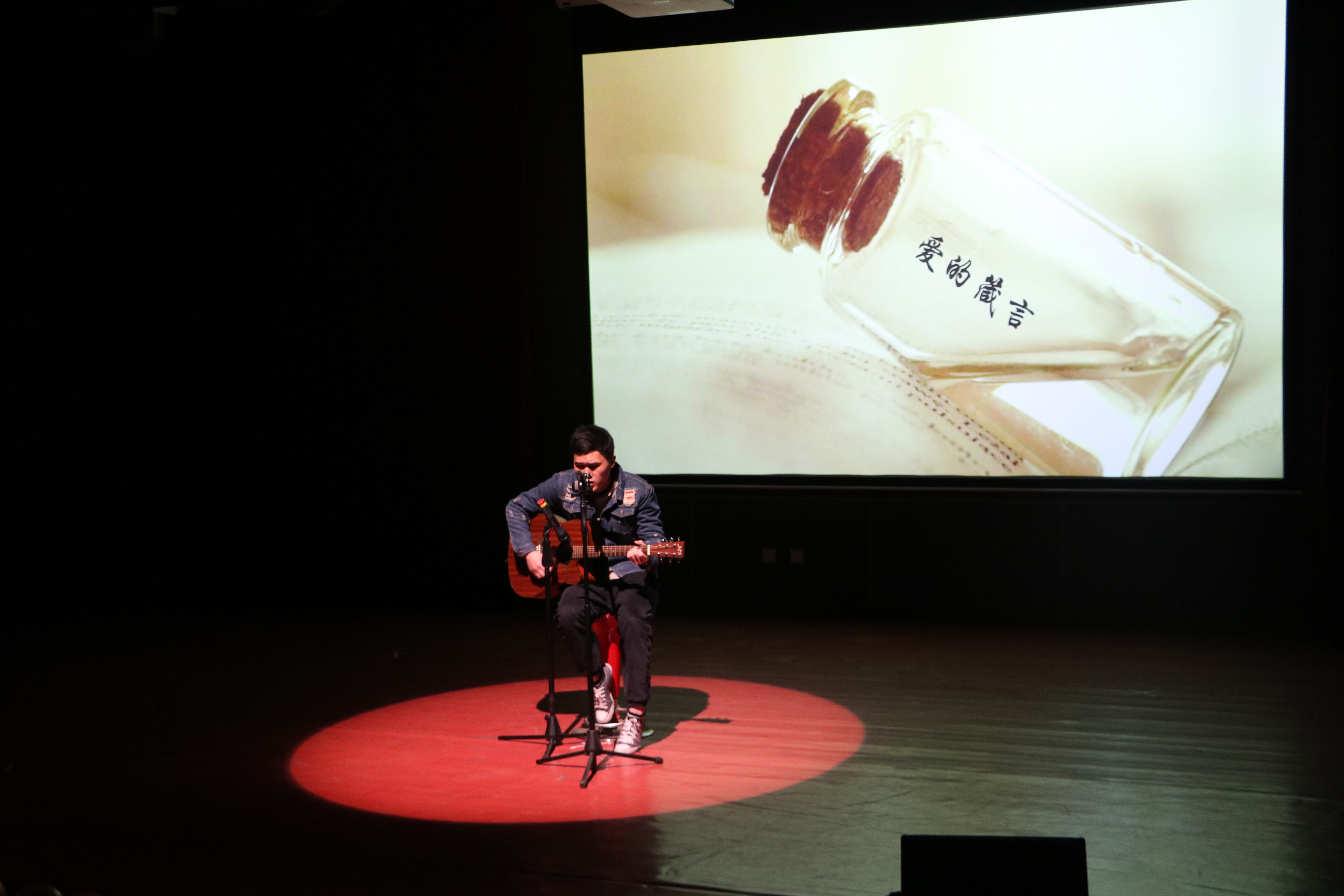 晚会以一段短视频开场,它不仅记录了同学们两年半年校园生活中的精彩与荣耀,还表达了许海燕老师以及学弟学妹们对毕业生们的祝福。视频结束后,精彩的节目开始上演。校“十佳歌手”王燕彬同学上台倾情演唱了一曲闽南风情歌曲《雪中红》,饱含地方特色的闽南腔调沁人心脾,给大家留下了特别深刻的印象,燕彬同学在麻豆社