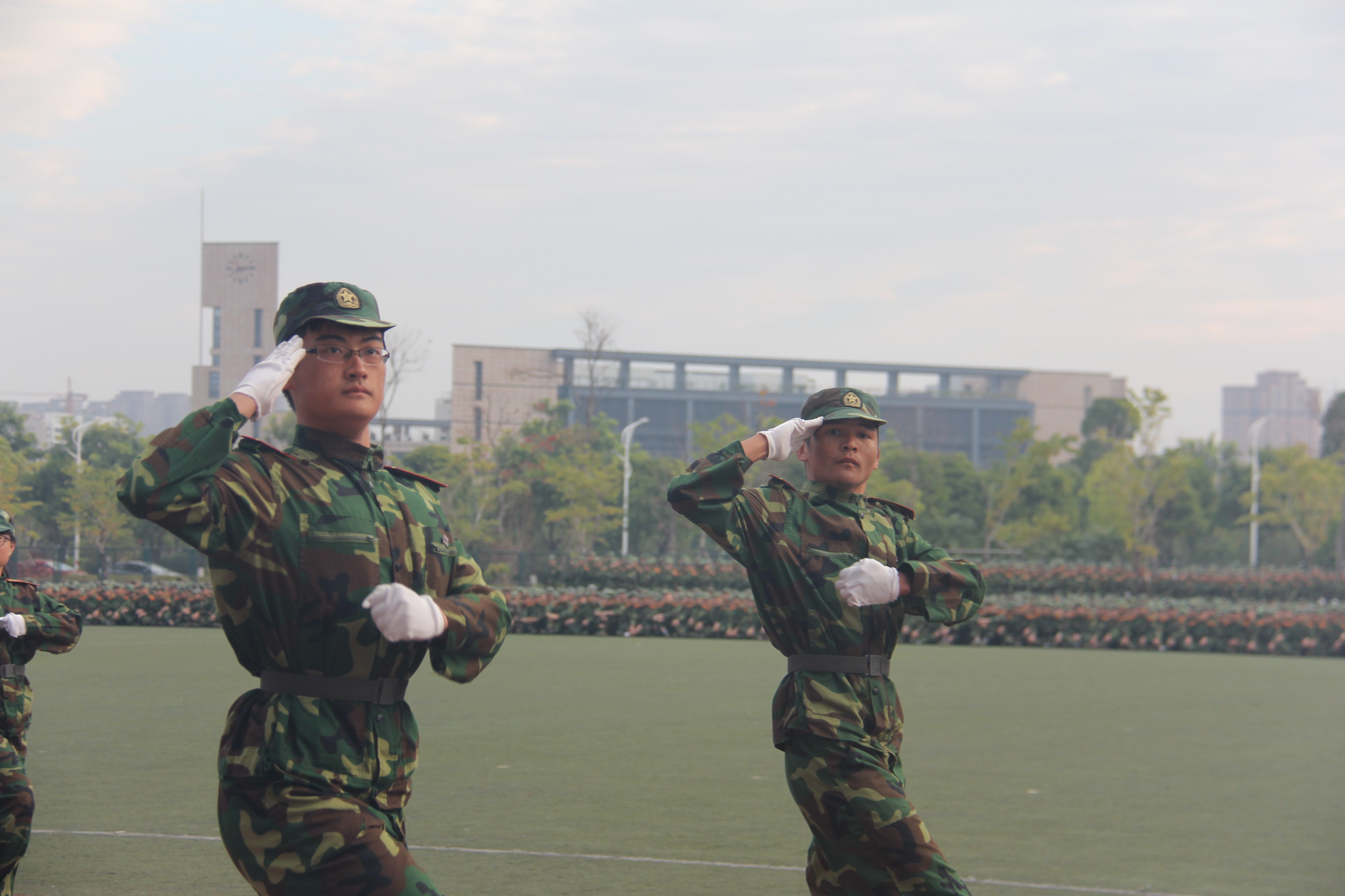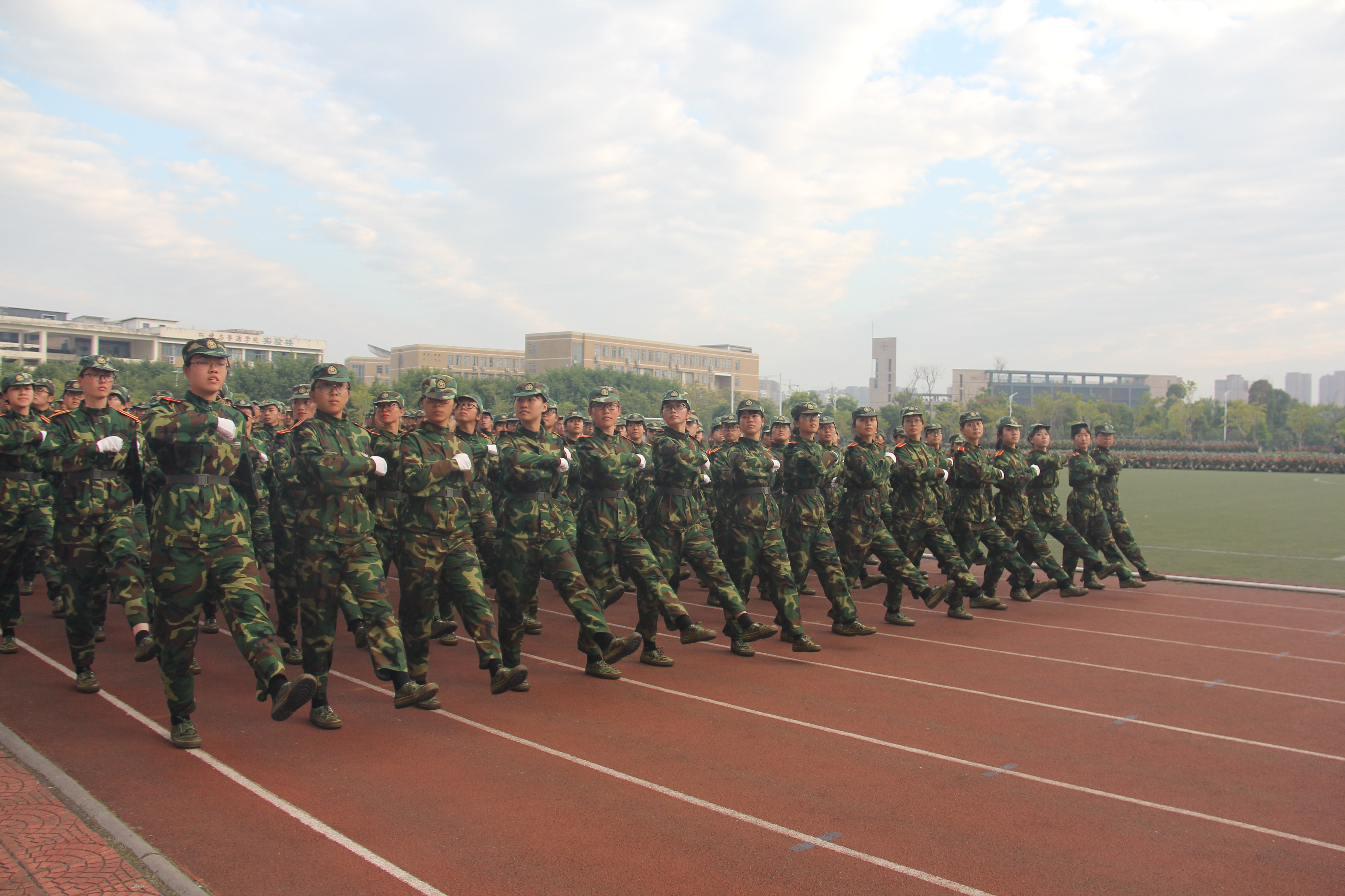 2017级新生军训分列式会操暨总结表彰大会在第一田径场隆重举行。历时两周的2017级新生冬训完美收官,2017级辅导员梁艳华老师出席了此次会操表演。大会共有十个议程,其中包括由新生组成的17个方块的分列式队列会操和400人的擒敌拳表演,以及教官的擒敌配套表演。当《中华人民共和国国歌》在一片绿色海洋中奏响时,在场人员全体肃立,一场激情澎湃的军训分列式会操正式拉开了序幕。