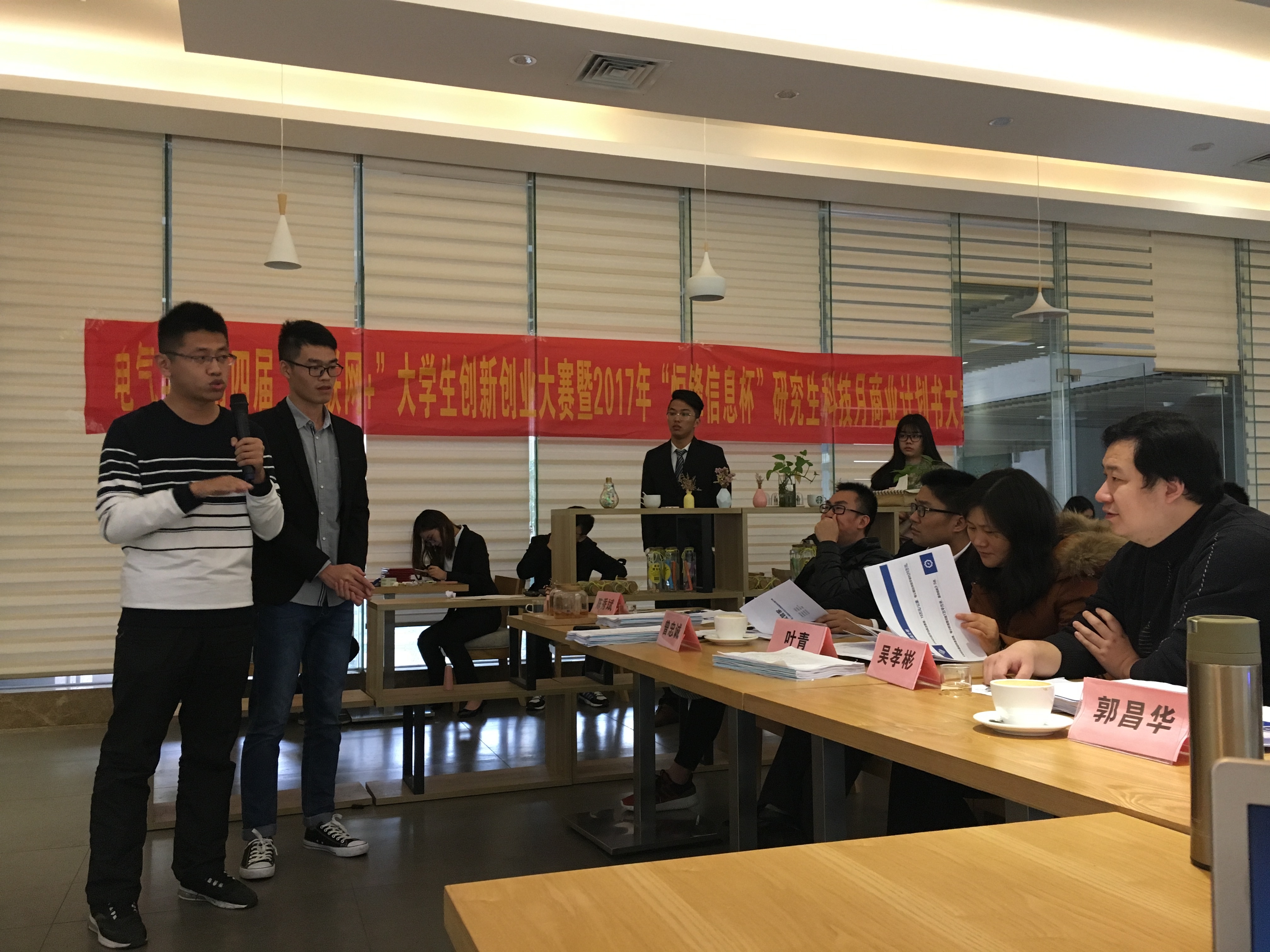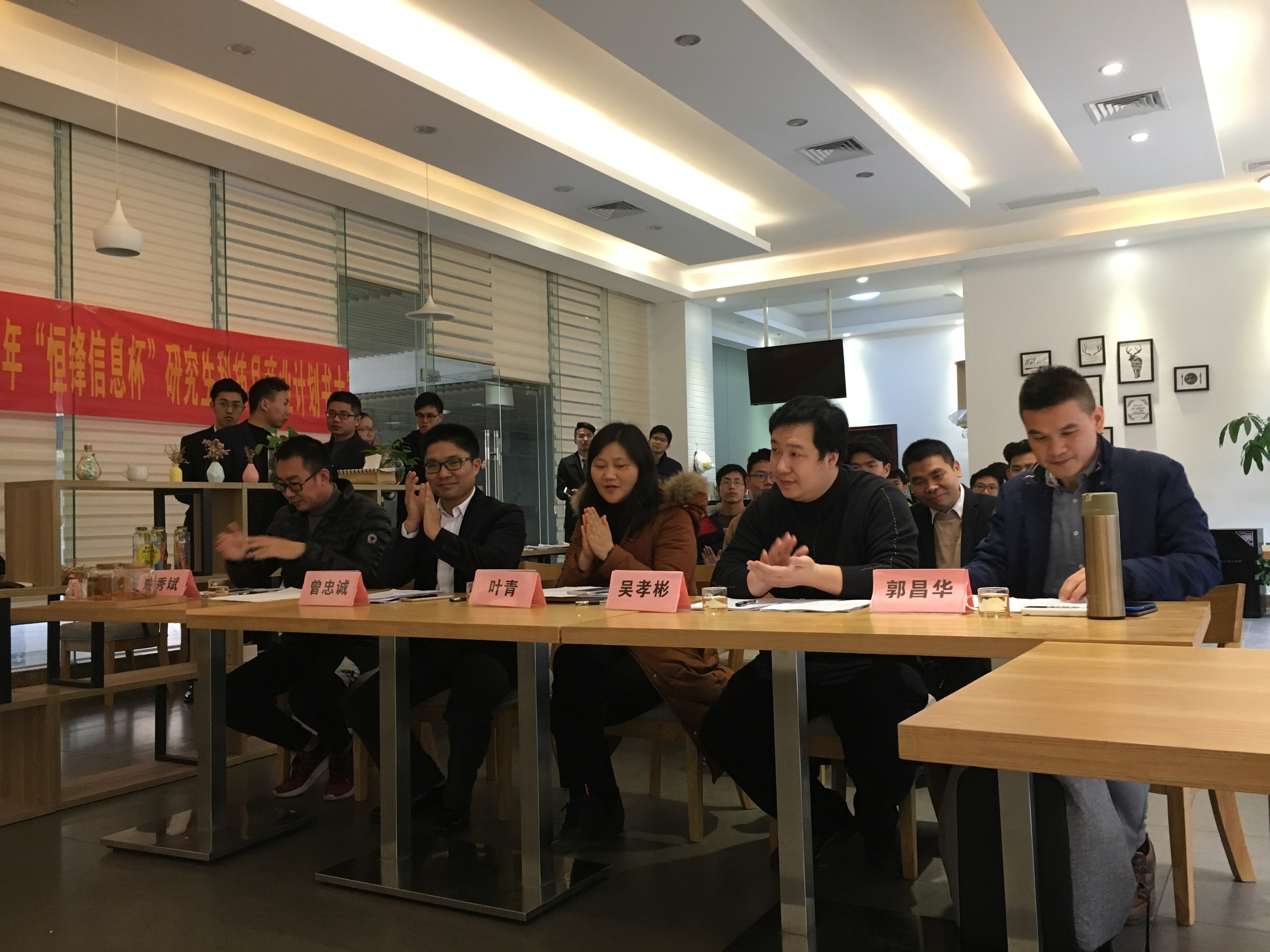 第四届“互联网+”大学生创新创业赛暨“恒锋信息杯”研究生科技月商业计划书决赛。出席本次比赛的评委有鸿腾电子公司总经理郭昌华、福建奥通迈胜电力科技有限公司总经理吴孝彬、新东网科技有限公司总裁曾忠诚、福建省众创空间协会会长陈秀斌以及麻豆社