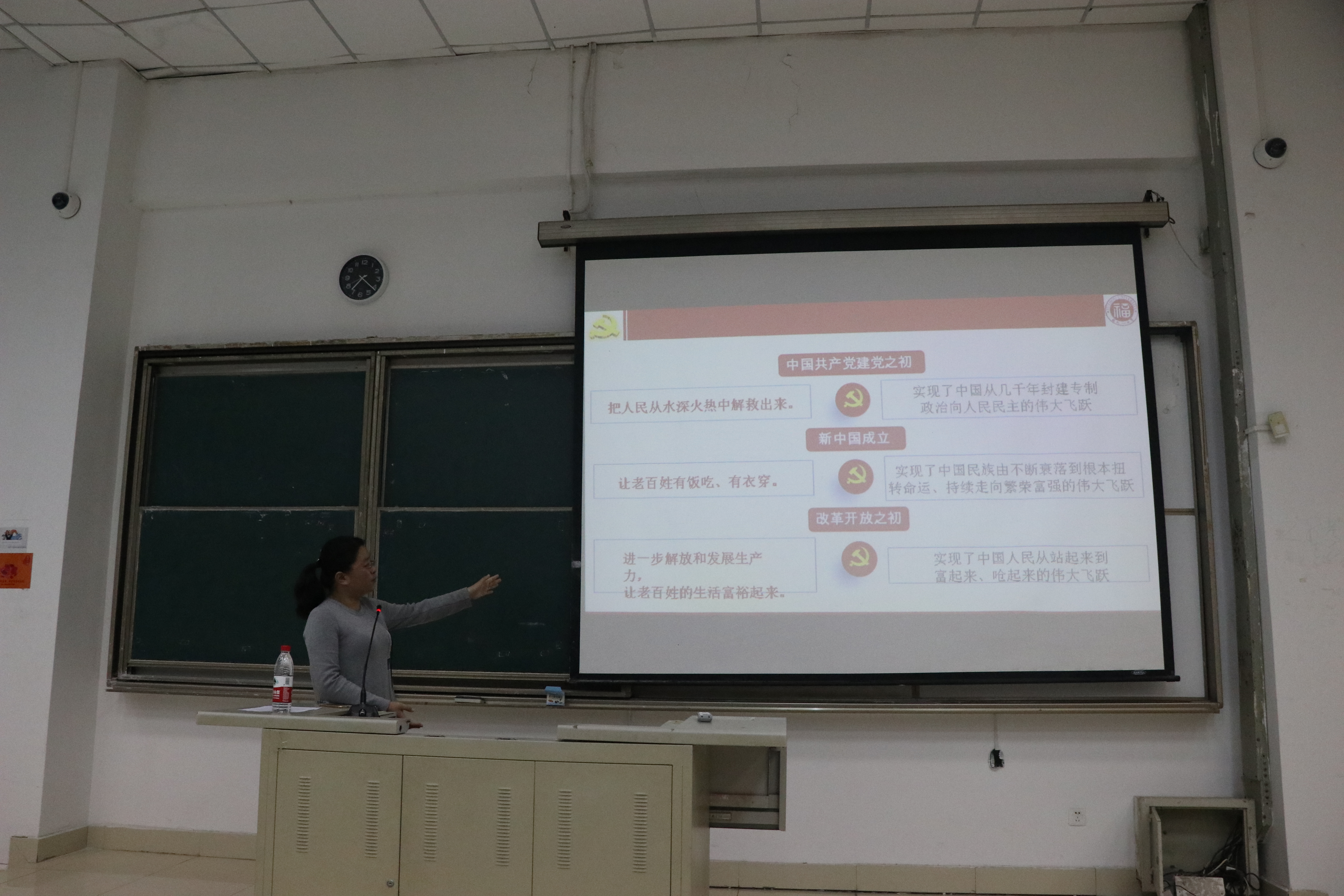 讲座一开始,张晶老师便与我们分享了她今年带队去美国游学访问的故事。通过这个例子,她告诉我们现在游学不再是迫切地去学习外国文化,而是去交流文化、拓宽国际化视野。张晶老师告诉我们要脱八十年代初期外国的一切都比中国先进的盲目崇外和自卑心理,以一种平等的心态看待中外文化。正如十九大报告中阐述的要坚持文化自信,中国人民已经站起来、富起来、强起来了,无论是迎接外国友人还是去外国展示中华文化,国人都变得很有底气,小小举例之后,张老师便开始阐述今天的主题“不忘初心,砥砺前行”。何为“初心”,从语文学上讲,“初心”就是出发时的目标、誓言或承诺,我们亦可引之为自己的梦想。“初心”一词,出自于庆祝建党95周年大会上习近平总书记深刻阐述的“不忘初心,继续前行”。因为我们怀有初心,所以遇到困难时,能够勇往直前,克服一切阻碍。而许多人可能已经忘却了自己的初心。他们选择“九三学社”式的大学上课方式,追求事少、薪高、离家近;位高、权重、责任轻的工作,不明白自己的初心,特别容易放弃自己的梦想。张晶老师还分享了她刚刚工作时候的经历,激励我们要坚持初心,矢志不移。