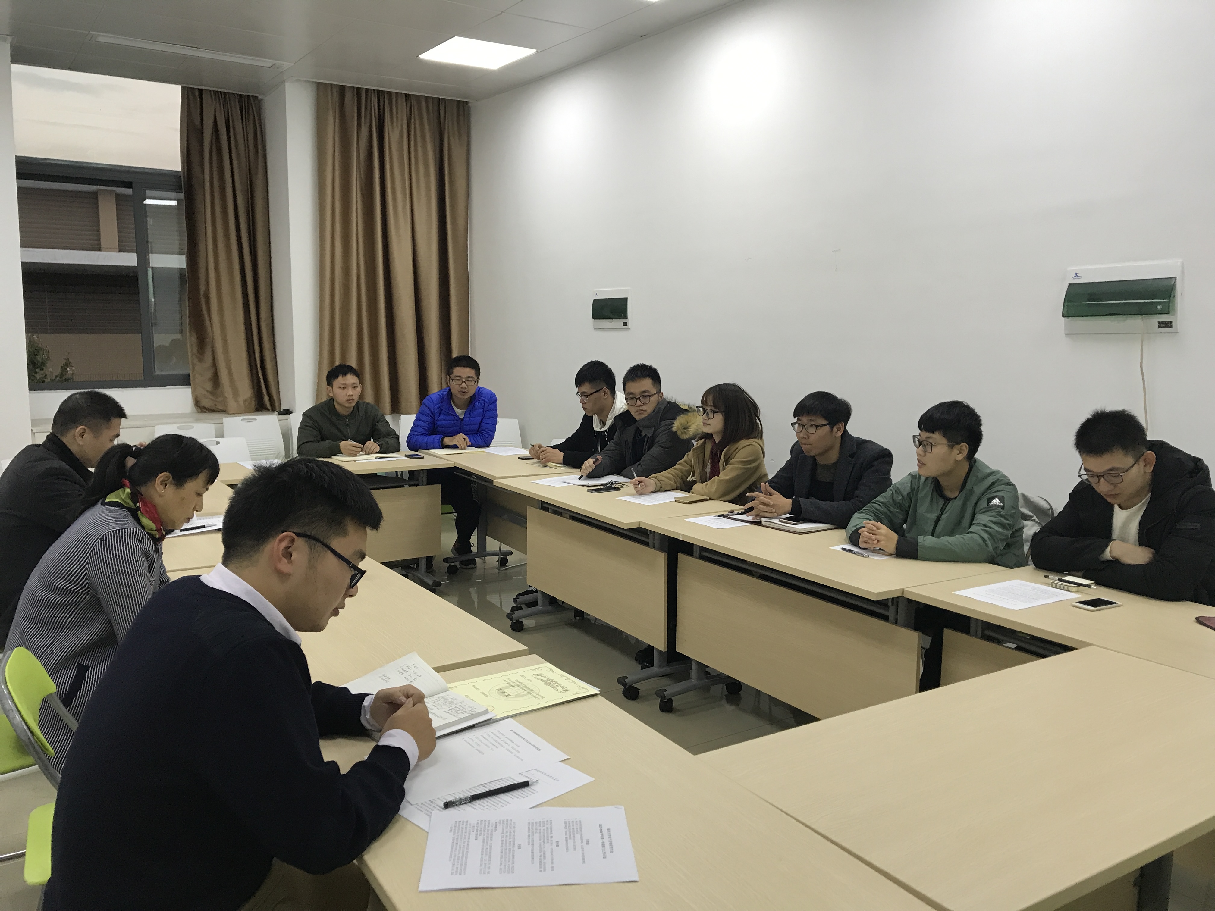 研究生会第三次全体干部会议在新楚楼北211召开,本次会议由研究生会主席张旗主持,出席会议的有团委书记沈庆斌老师,研究生辅导员许海燕老师以及研会主席团、各部门部长。