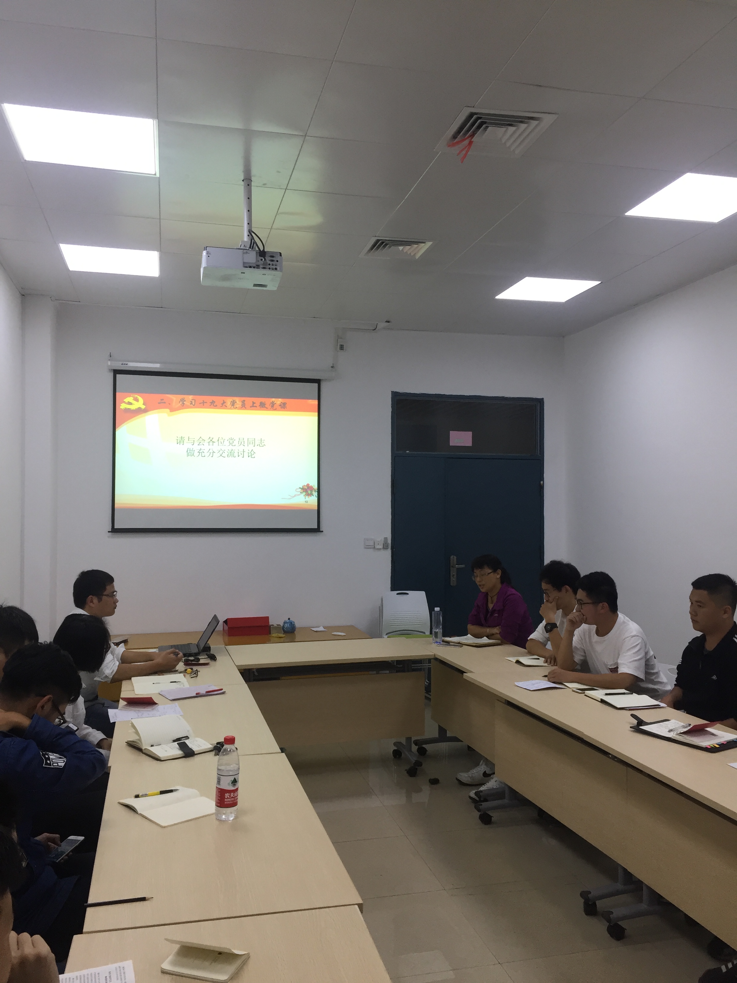 随后,研究生三年级的党员同志分享了他们的在校期间的学习,科研和求职的经历,与新生党员同志进行了热烈的讨论,现场气氛热烈。最后,许海燕老师对会议进行了总结,她肯定了本次会议的成功召开,对微党课展示的五名党员同志给予褒奖,并提出了宝贵的建议。同时指出党员同志应发挥先锋模范带头作用,牢记党员使命,在学习科学理论知识的同时应不忘加强政治理论学习,希望大家能够认真学习党的十九大精神,将十九大精神落实到实际行动中,体现党员的先进性。