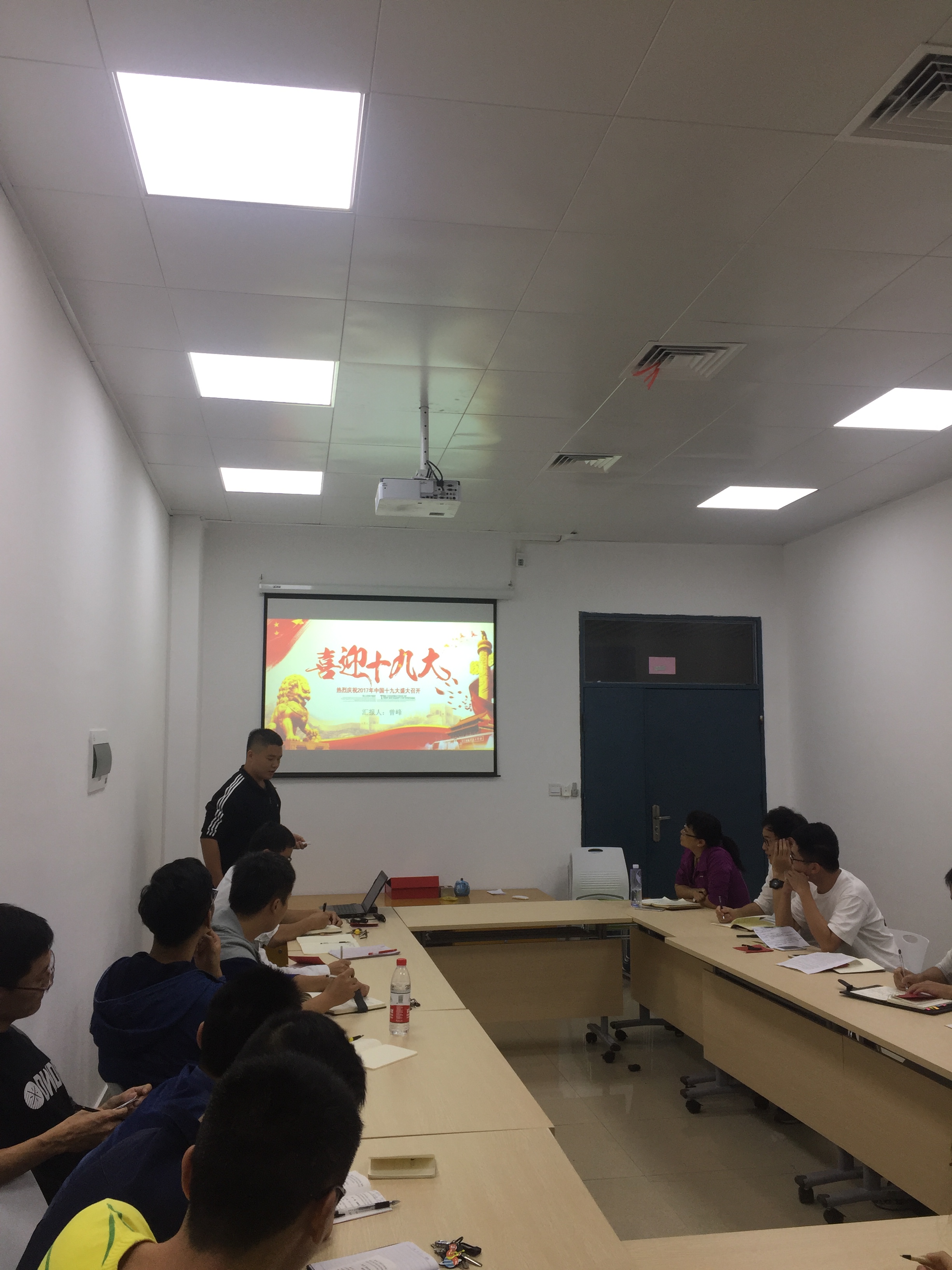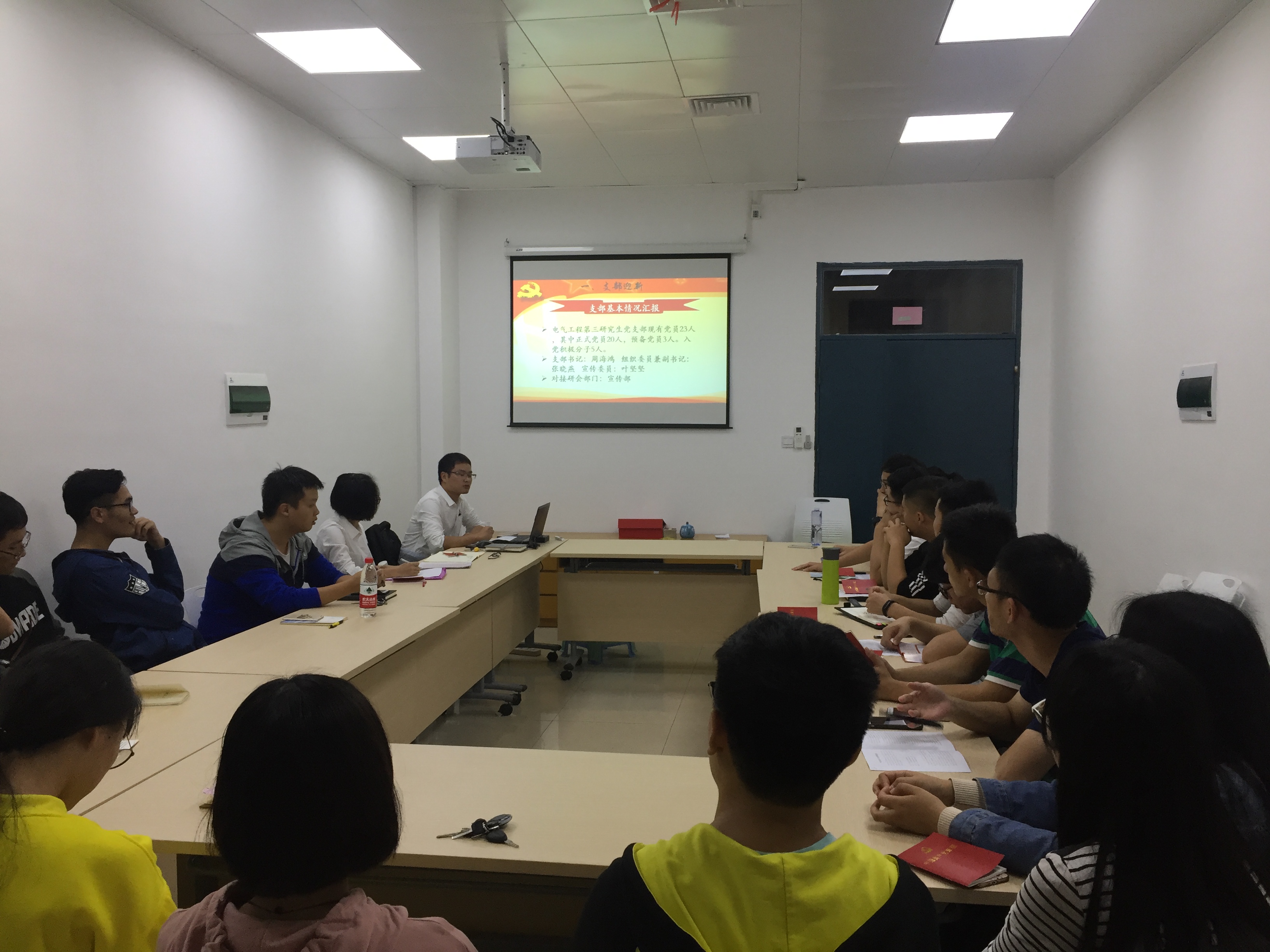 新楚楼北211召开。此次会议旨在全面学习贯彻党的十九大精神,把党的十九大精神落实到学习生活中。会议由党支部书记周海鸿同志主持,电气工程第三研究生党支部23位党员同志参加会议,研究生辅导员许海燕老师出席了本次会议。本次会议的议程为学习十九大微党课展示以及新老生党员交流。