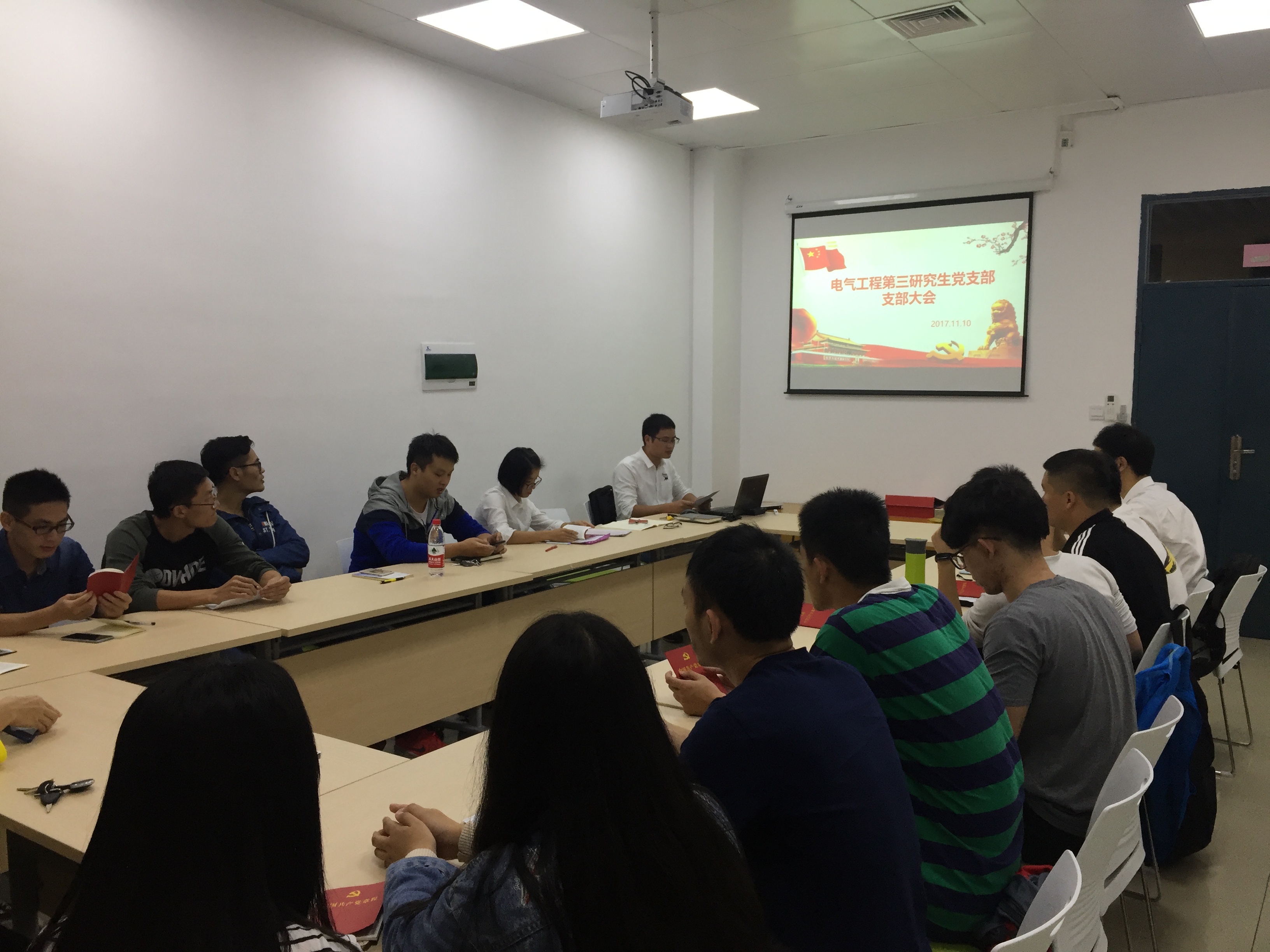 2017年11月10日晚六点三十分,电气工程第三研究生党支部学习党的十九大精神暨新老生党员交流会在麻豆社