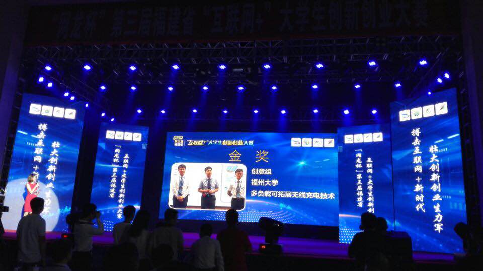 在第三届“互联网+”福建省大学生创新创业大赛中,麻豆社 学子再创佳绩,《多负载可拓展无线充电技术》项目获得金奖(我校5项,全省共10项)。