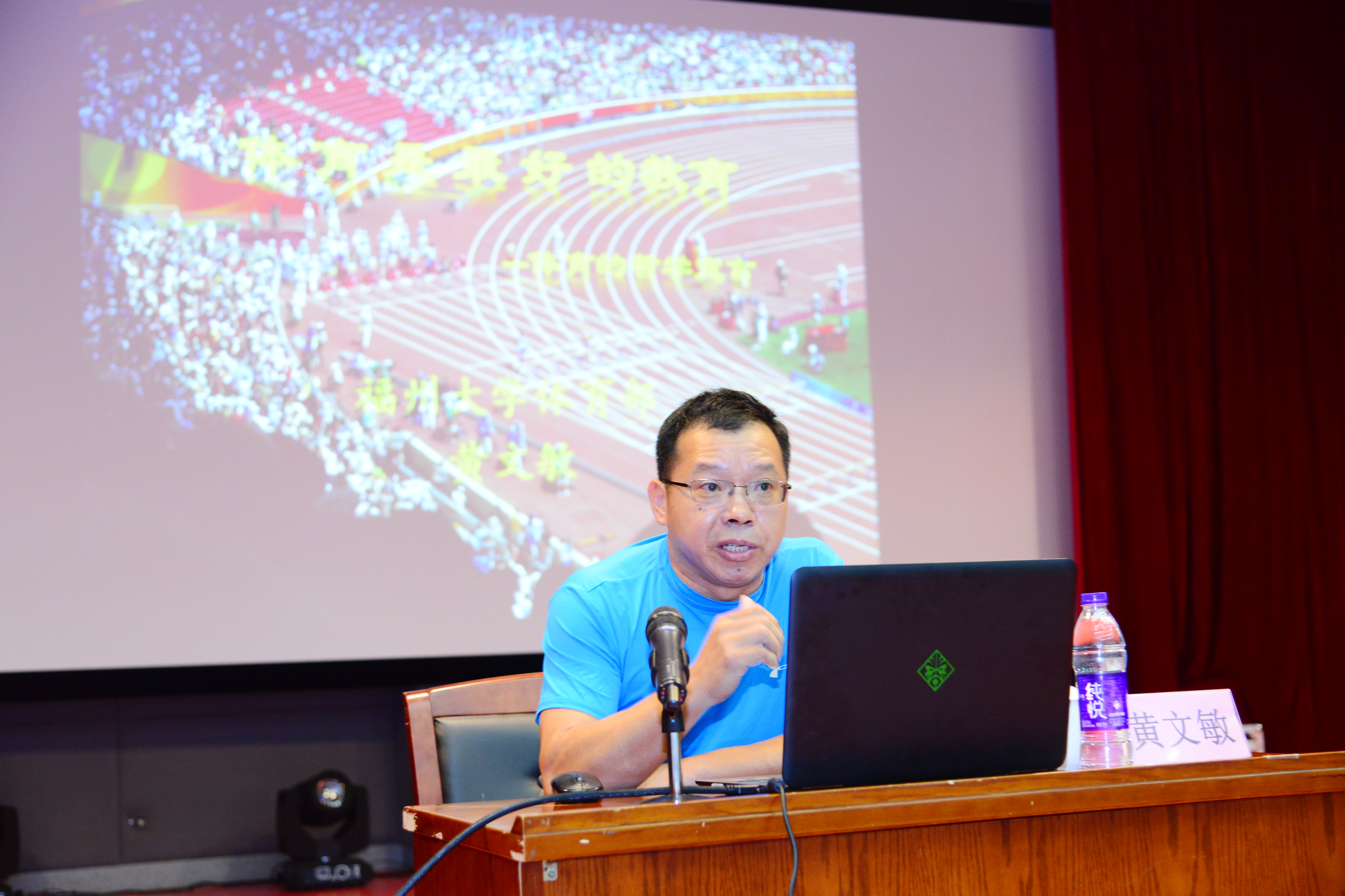 紧接着,黄文敏老师引用毛泽东、严复、陈独秀、蔡元培等人对体育的主张和观点,指出了教育应多育并重,体育为先。最后,黄文敏老师对现代大学生参与体育运动的意义进行阐述,在场新生收益匪浅,本次讲座在掌声中圆满结束。