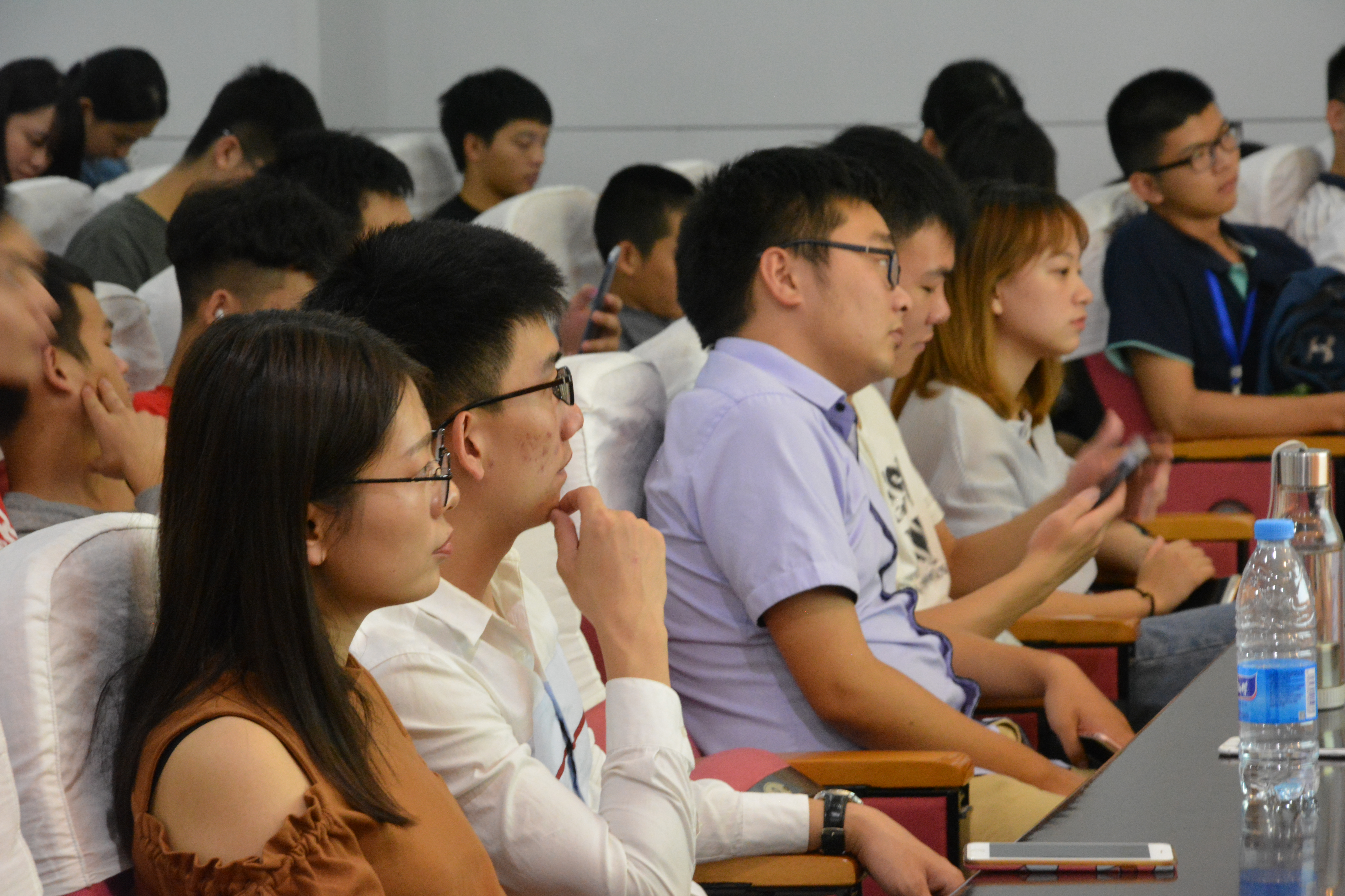 首先上台演讲的是本校保研华科大的杨英杰。他提出了6+3+1的保研过程,即6分实力3分信息1分运气。学科成绩始终是保研的生命线,是保障;其次要关注各类竞赛信息,准备比赛来提升附加值;而那1分运气指的是要敢于向老师展示自己。该同学还讲述了夏令营与预推免的重要性,为准备保研的同学提供了宝贵的经验。