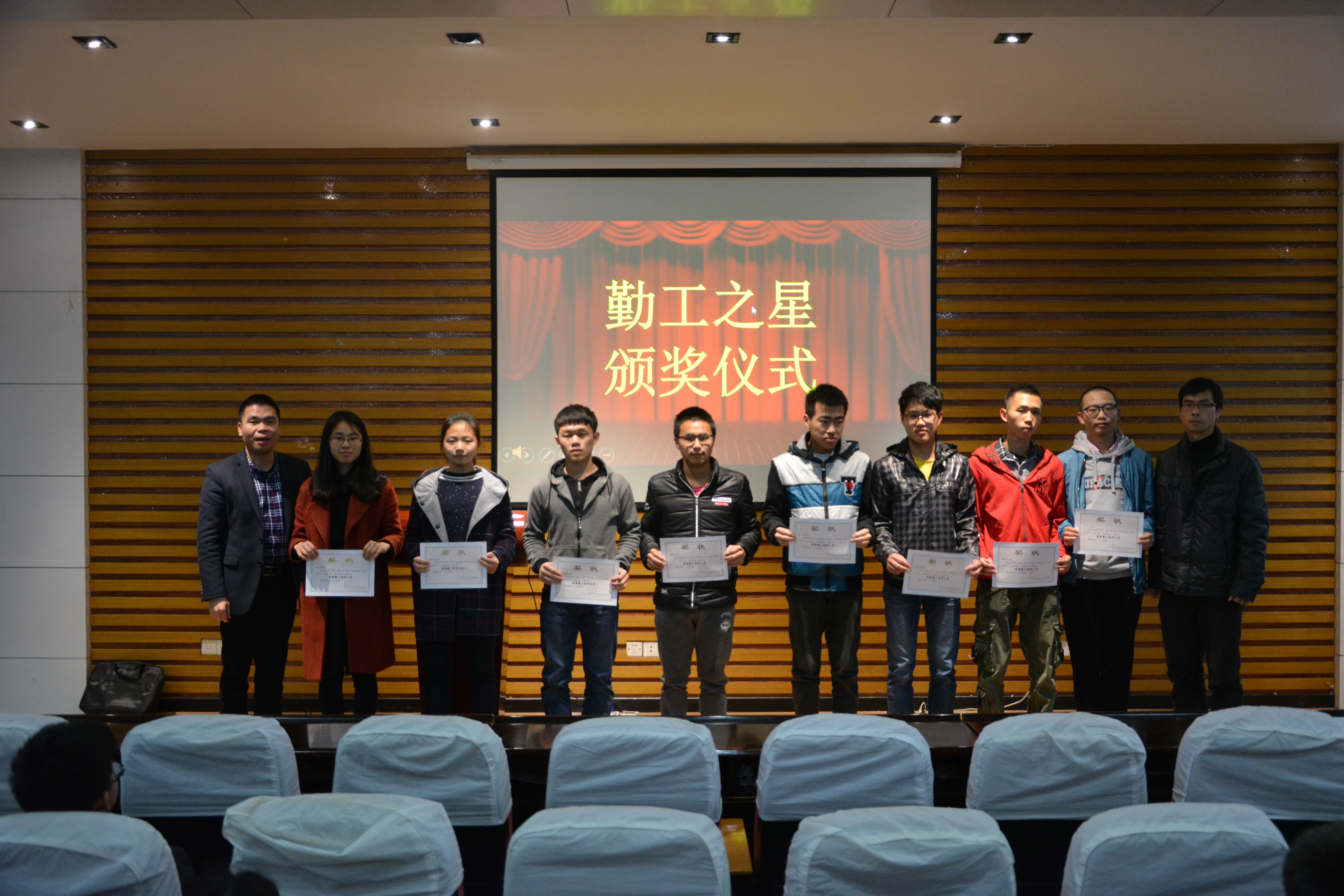 随后,张志雄老师和沈庆斌老师共同为过去一年为学院检评工作做出突出贡献的梁一敏、陈情玲、赵杰、秦伟富、陈圣江、吴杰六位同学颁发了“勤工俭学之星”奖状,并向楼委会检评部的陈煜超、涂明权、赵雪倩三位同学颁发了优秀部员的称号。