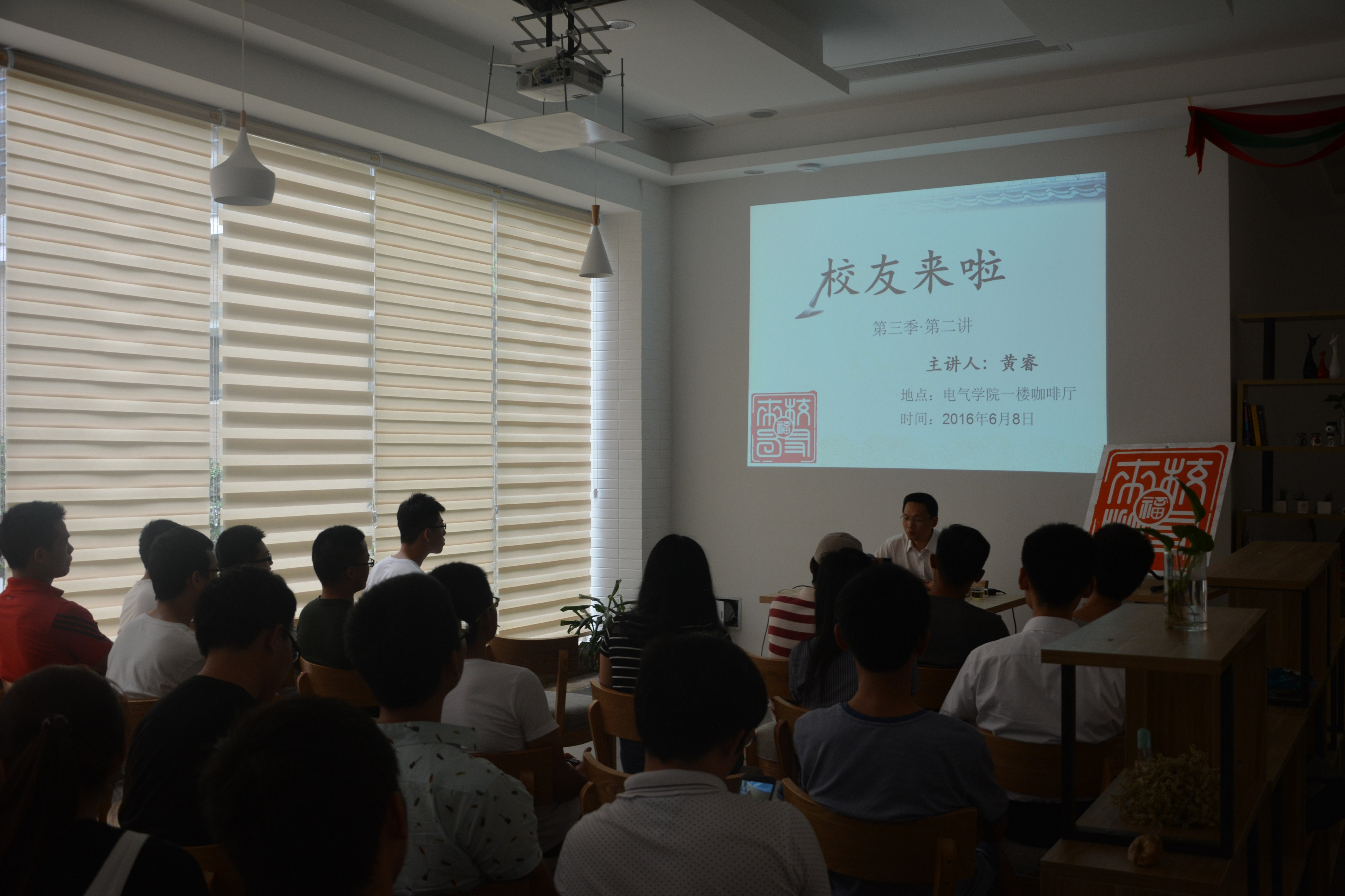 校友来了系列讲座第三季第二讲在新楚楼一楼咖啡厅成功举办。此次讲座邀请了校友黄睿先生作主讲人。黄睿先生现任国网福建省电力有限公司调度中心设备监控管理处副处长。