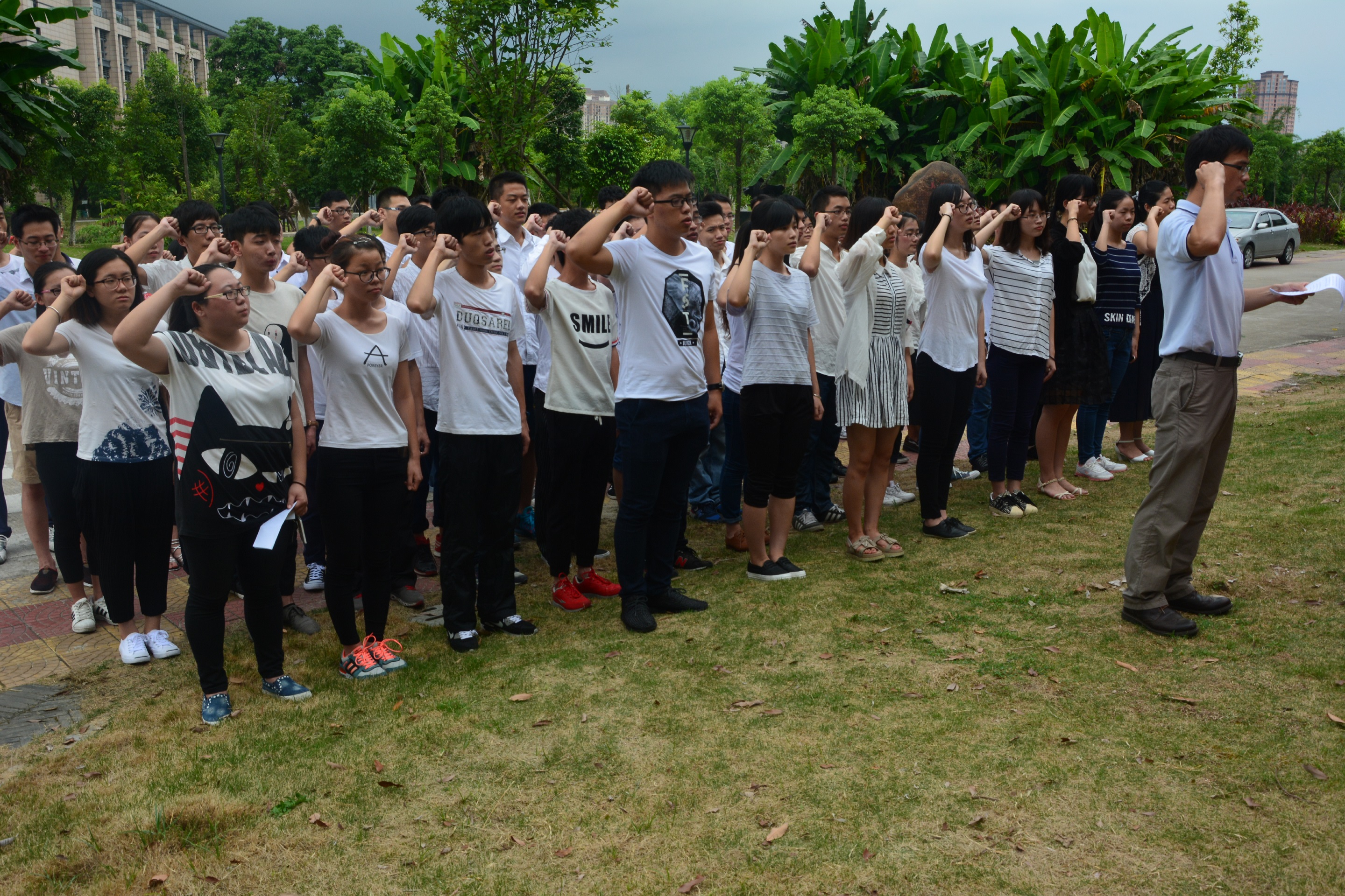 80余名预备党员及发展对象在团委书记张志雄老师的带领下参加宣誓活动。