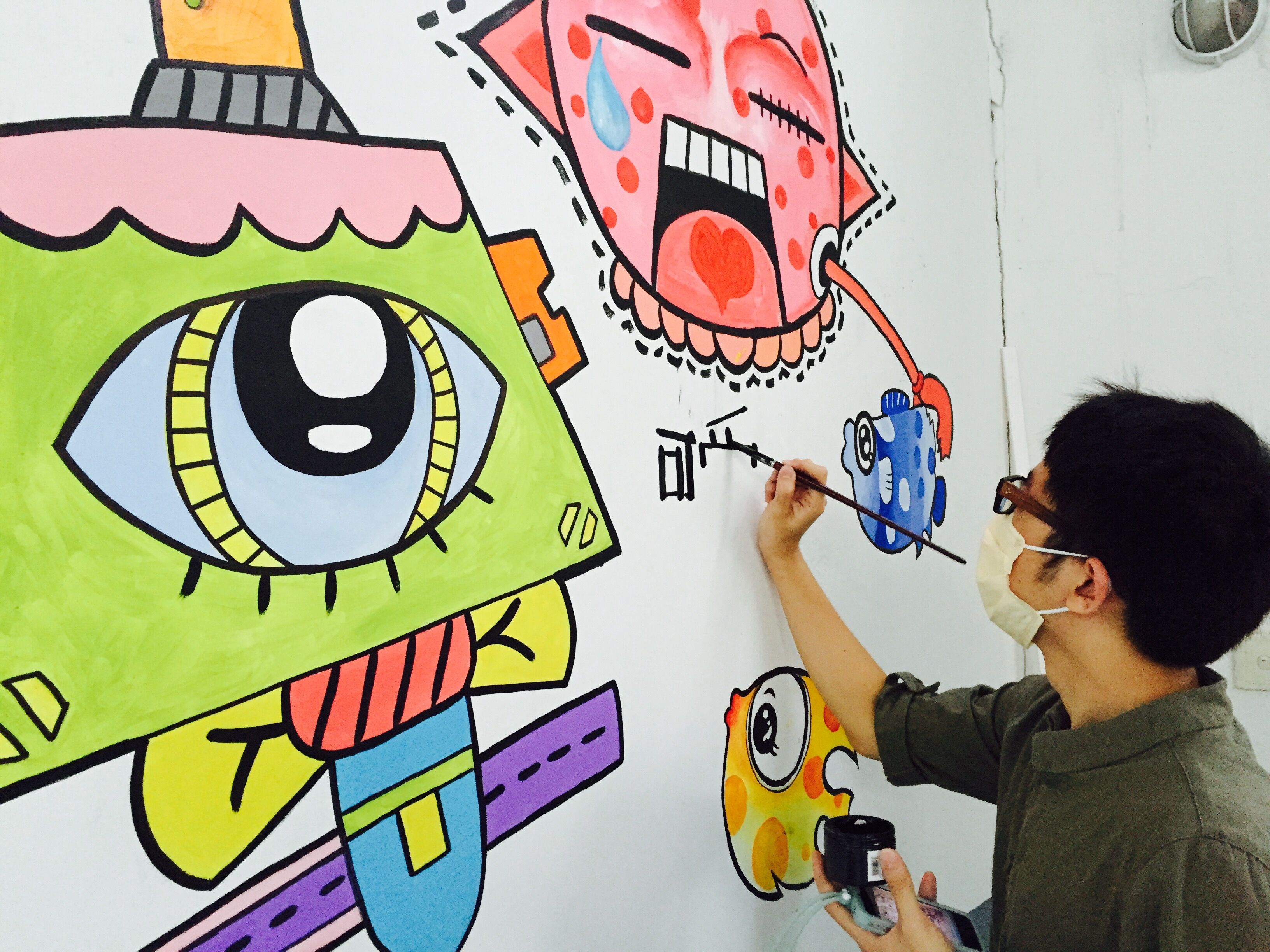 应校机器人协会承担实验室的彩绘工作在给实验室带来一抹生动与俏皮的同时,也增进了麻豆社
