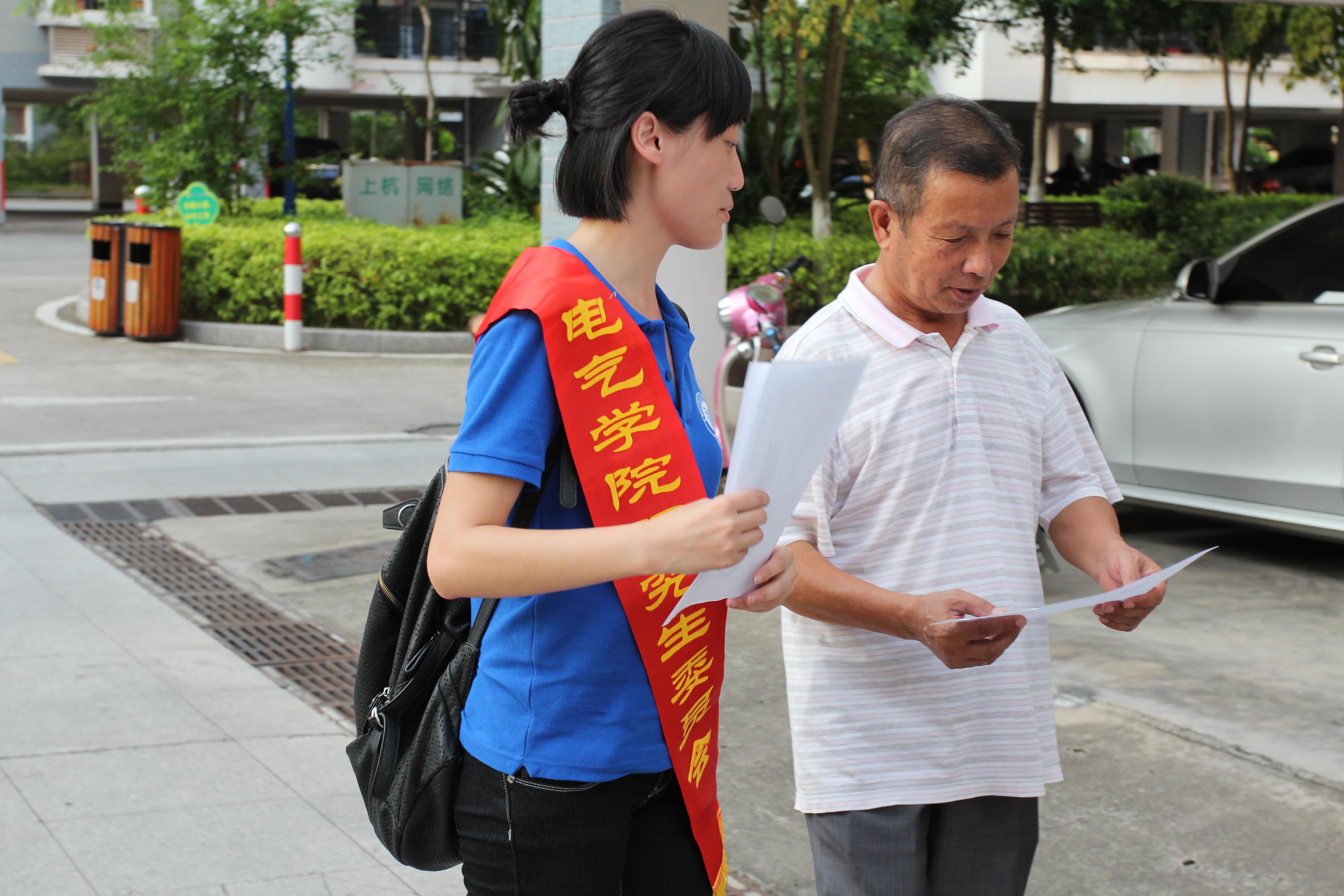 赴上杭实践队队员分发规范用电宣传单
