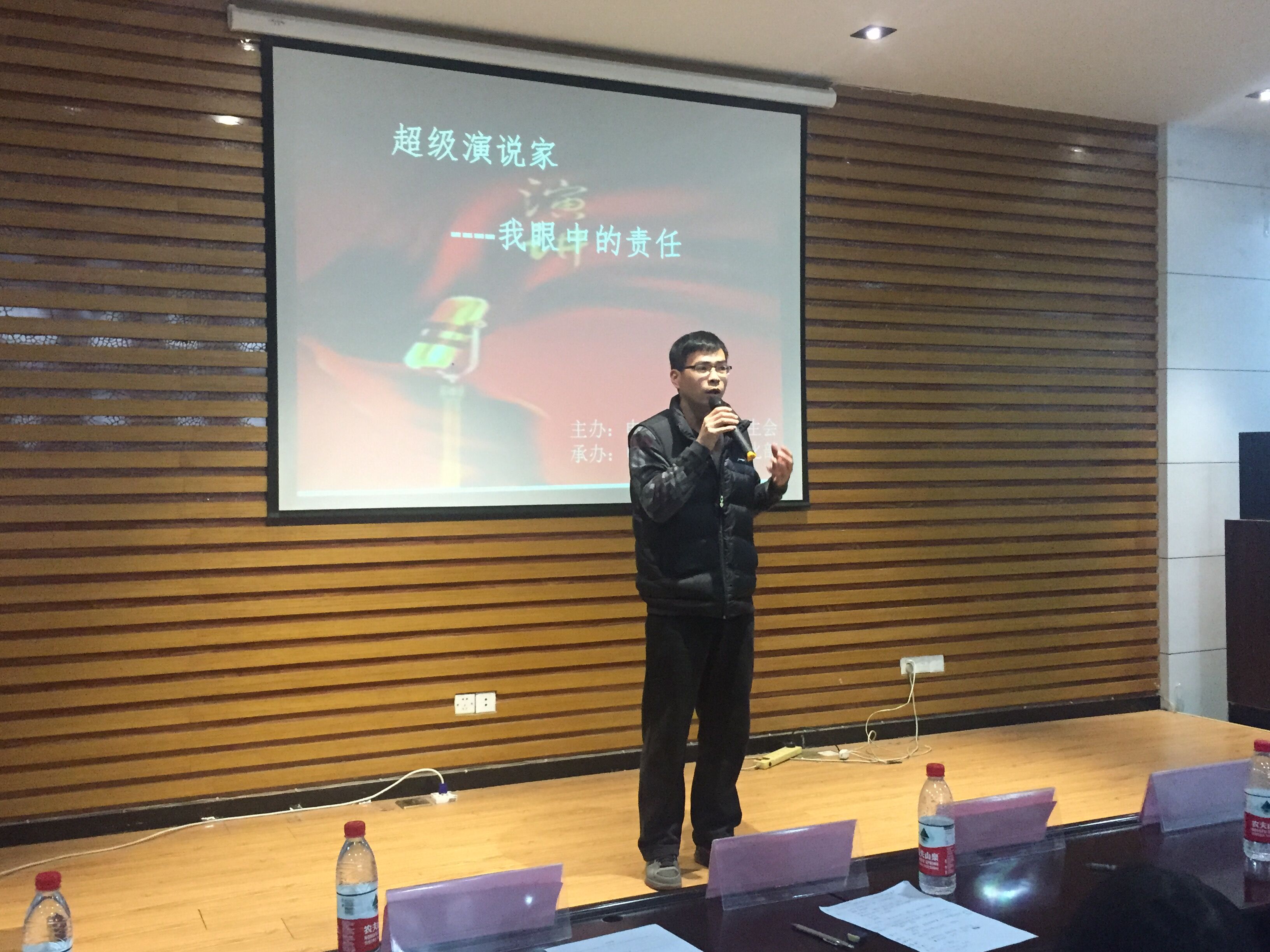 本次演讲比赛以“我眼中的责任”为题目,各位选手在台上都表达出了他们对于责任的不同看法。二号选手徐小冰同学引经据典,得出大学生的责任是学习、创造以及服务社会,得到了大家的认同。七号选手黄家芳以自身经历为例,饱含着热泪讲述了妈妈对于家庭的责任,引起了台下同学们的共鸣。而八号选手李江荣带来了不一样的视角与态度,他认为承担责任是承担一种痛苦,当人能够承担起责任的重担时,他已经逐渐成熟了,独特的解读角度引发了同学们对于自身与社会方面责任的思考。随后,张导对几位选手的表现进行了简短的点评,指出责任在社会各方面的重要性。接着,主持人宣布了各位选手的比赛成绩及获奖名单,李江荣同学以出色的表现荣获一等奖,黄家芳与徐小冰同学夺得二等奖,获得三等奖的是李友增、章进鋆与林梦楠同学。最后,此次演讲比赛在同学们的热烈掌声中圆满结束。