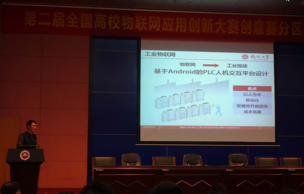的徐哲壮老师指导的《基于Android的PLC人机交互平台设计》。经过一天精彩、激烈的比赛该项目获得第二届全国高校物联网应用创新大赛创意赛华南赛区决赛二等奖!
