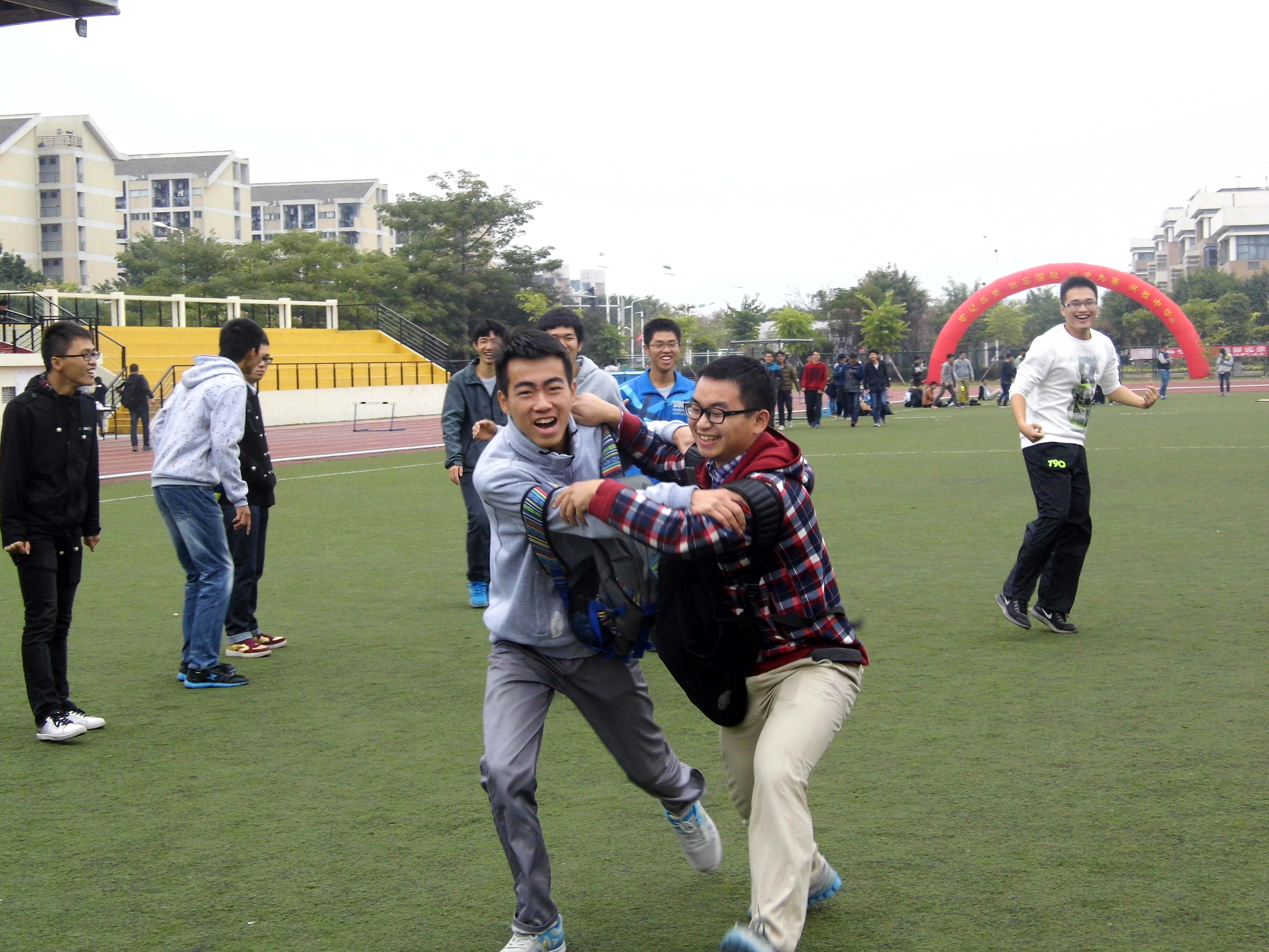 此次趣味运动会以楼层为单位共计有28支队伍参赛。比赛以“走下网络、走出宿舍、走向操场、走向健康”为主题,分为“绝不放手”、“智勇大冲关”、“翻滚吧!萝卜”和“跳跃吧!连体袋鼠!”四大游戏板块。这些比赛项目无不考验着团队合作精神,队员间的配合稍微有些失误便会将团队总成绩拉下。例如,连体袋鼠极其考验队员的协调性和敏捷性,同一只“袋鼠”里的两名队员需要心意相通步法一致,操之过急或过缓都会导致队员的绊倒,只有团结协作心齐向前,才能稳稳当当的跳跃到终点。在经过激烈地比拼后,承办方共评出男生组女生组各有3支获奖队伍。其中,圣地亚哥kimoji队和one of a kind队分别斩获男生组和女生组桂冠。趣味运动会在一片欢乐和谐的气氛中落幕。
