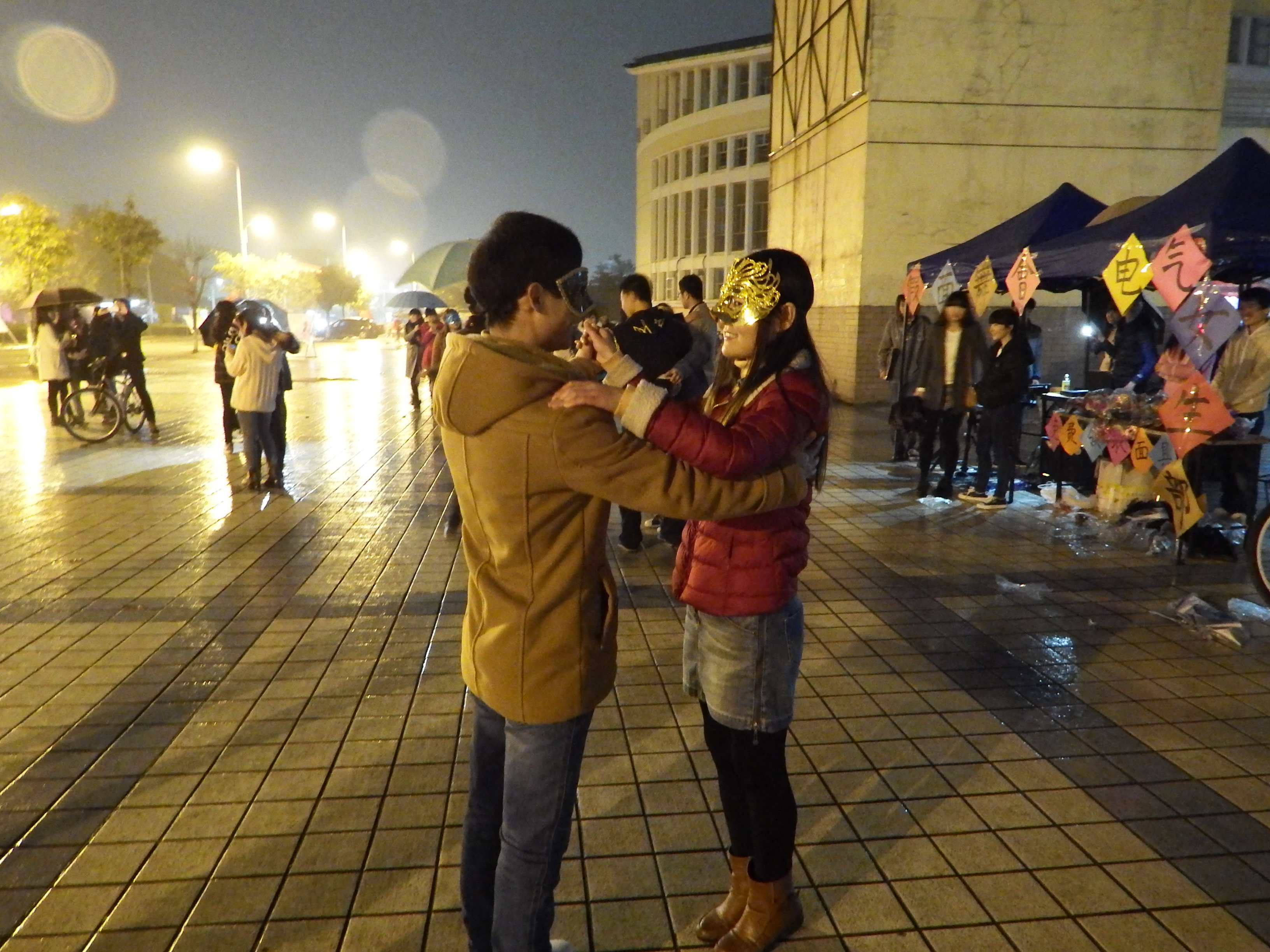 舞会以江娜,刘舒仪同学的倾情演唱拉开序幕,紧接着,就正式进入大家最期待的环节,现场的同学们纷纷上前领取假面舞会所需的面具,考虑到大家的舞蹈功底等因素,舞会特意邀请到校飞扬舞协会为大家教授华尔兹的基本步法。在舞队的专业教学下,大家依次邀请自己的舞伴随着音乐起舞,动听的旋律伴着优美的舞步,昏黄灯光下的面具闪烁无不为这个带着丝丝细雨的夜晚染上温暖的色彩。舞会过程中,男女同学配合默契,进退之间划出醉心的弧度,在一旁的同学们也被这温暖的氛围所带动,拉动现场全民参与,使得现场气氛不断升温,舞池不断扩大。在如此温馨的情形下,时间总是溜得格外迅速,不知不觉中舞会已接近尾声,同学们纷纷退出舞池为飞扬舞队的成员腾出空间,在舞队起伏连绵的舞步以及华丽典雅的舞姿中,本次假面舞会正式落下帷幕。