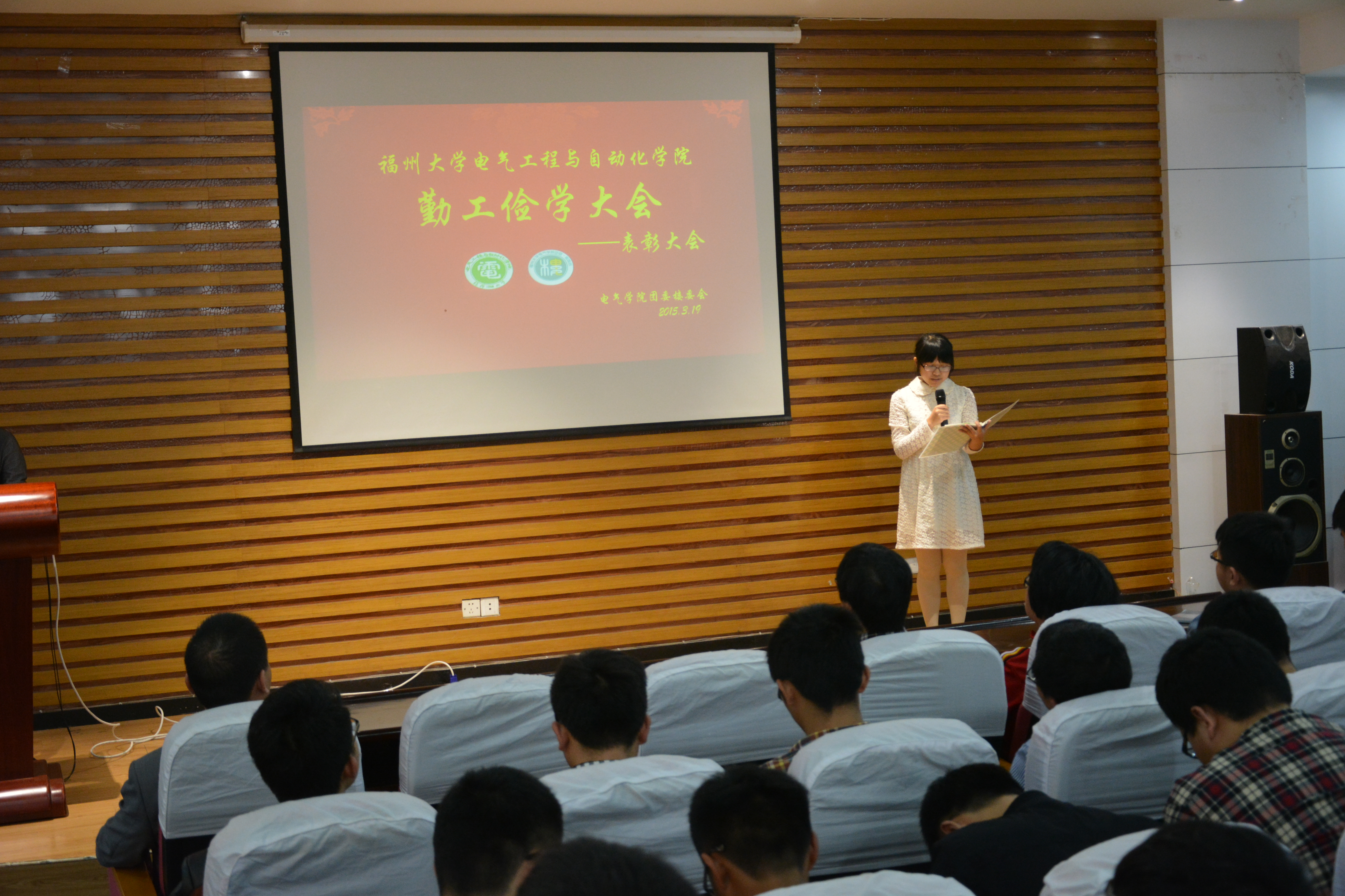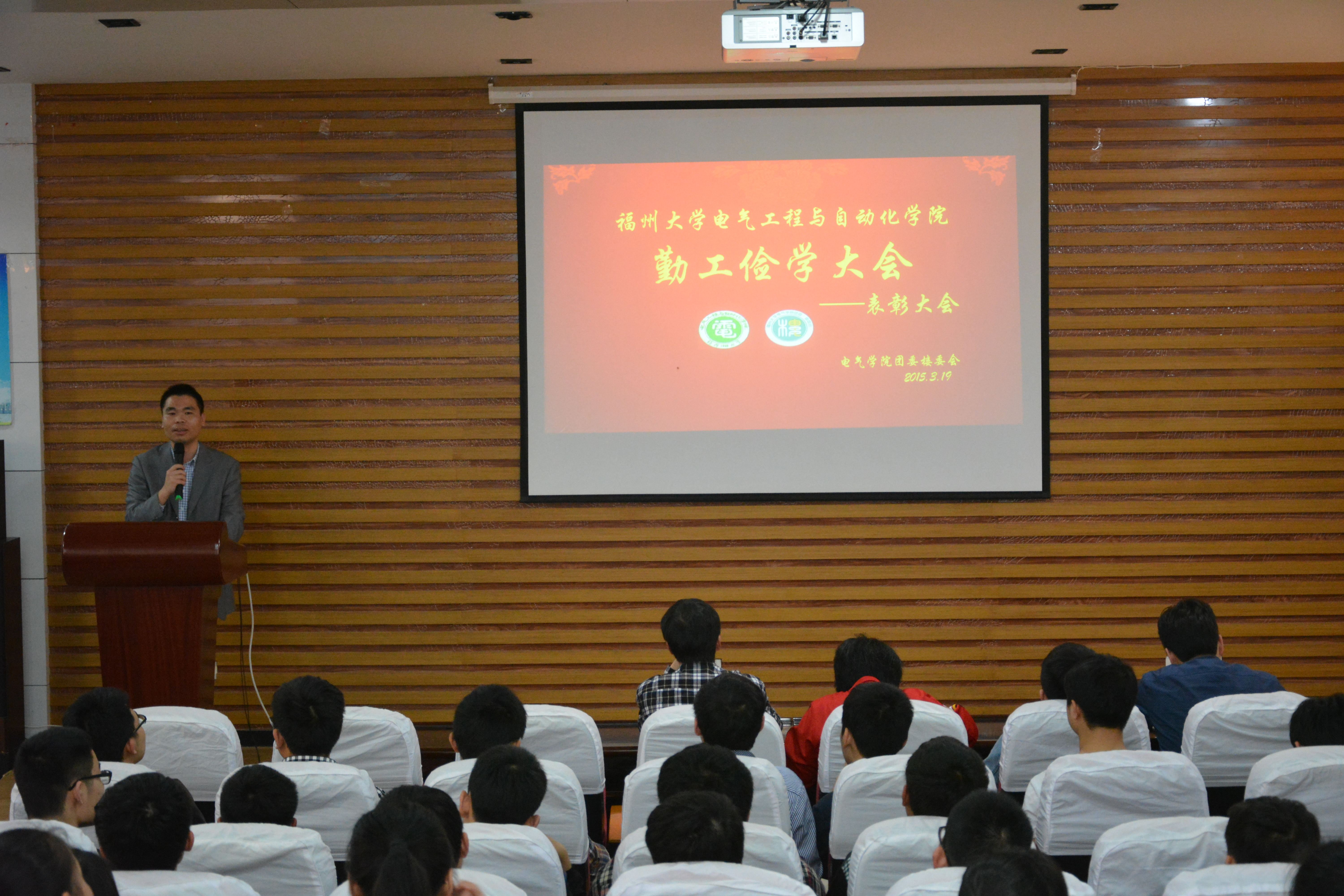 会议首先介绍了到场的领导和来宾,为他们百忙之中抽出时间参加会议表示感谢,接着由许成崇与王建勋两位学生代表向大家讲述了自己在勤工俭学过程中付出的努力与取得的收获。他们的发言中有一个共同点,那就是勤工俭学是一种动力,激励着他们不断向前,否则就辜负了学校与国家对他们的期望与帮助。随后,学院领导为表现优秀的勤工俭学同学颁奖。过后,由检评部对上学期的工作进行了总结以及对下学期的工作计划汇报。最后张志雄老师对同学们的辛勤付出表示了感谢,并结合自身的经历期望同学们都能成为自立自强的电气好青年。