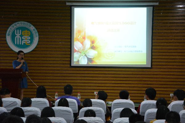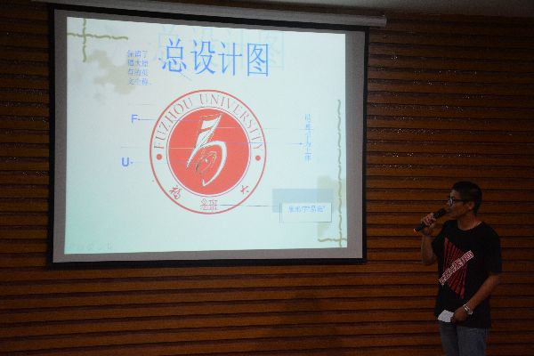 在现场评委与观众的期待下,1号两位选手于轻快的音乐声中开始了他们对自己logo作品的介绍。别出心裁的创意与自信大方的台风,为他们赢得了阵阵好评。之后的各组选手也是自信满满,各展其才,用精美的PPT与流畅的解说,讲解着自己的设计思路与作品内涵。其中,来自2014级8班的龚赵慧同学巧妙地融合了福大校徽与祥云图案,而祥云图案又拼接成一个优美的“易”字,简约大方,使主题鲜明突出,构图精美,意蕴丰富,博得在场观众最热烈的掌声。在15位选手的精彩展示过后,便进入到扣人心弦的统分环节。值得一提的是,本次大赛特设了观众投票环节,这将影响着在场选手的最终得分。于是,现场观众纷纷提笔,为心仪的作品投上宝贵一票。最终,龚赵慧同学力压群雄,获得第一名,本次比赛也在获奖选手愉快的合照中宣告结束。