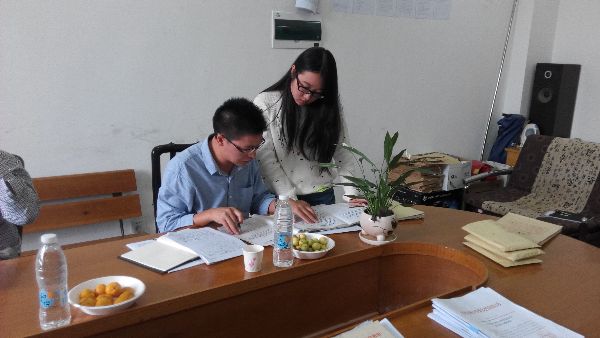 党员花名册后抽检了3位党员同志的档案材料并做了详细记录。在检查材料的同时,陈洪尧一边记录,一边还和学生党建辅导员张志雄、沈庆斌以及基层学生党支部书记一同探讨党员发展和积极分子培养工作的具体细节。